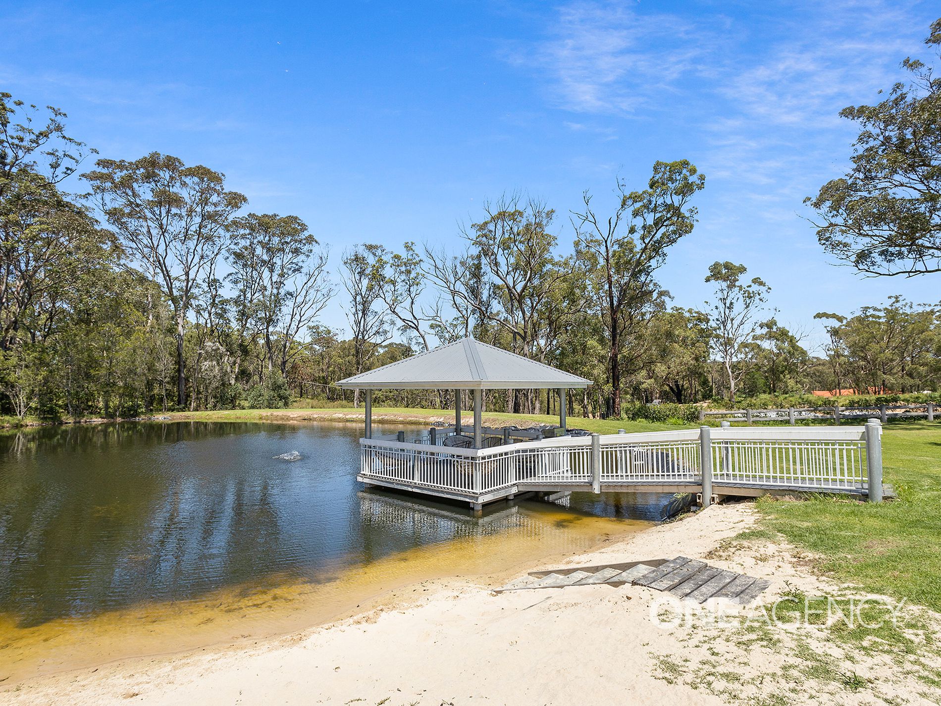 - Resort-style pool with sunbeds, sun-drenched spots, and a gazebo with serene water views