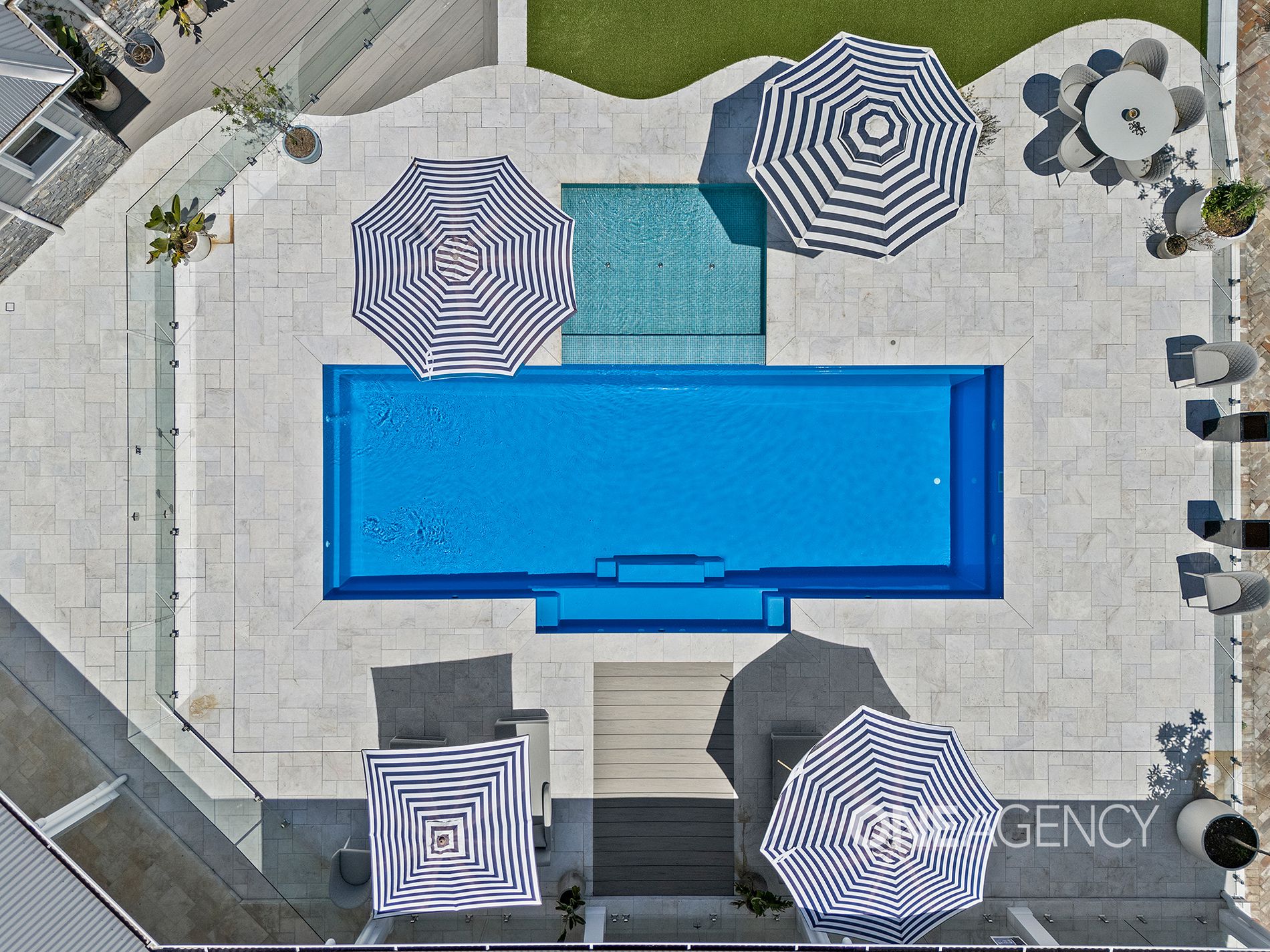 - Large Pool House, where the walls of glass disappear into cavities!