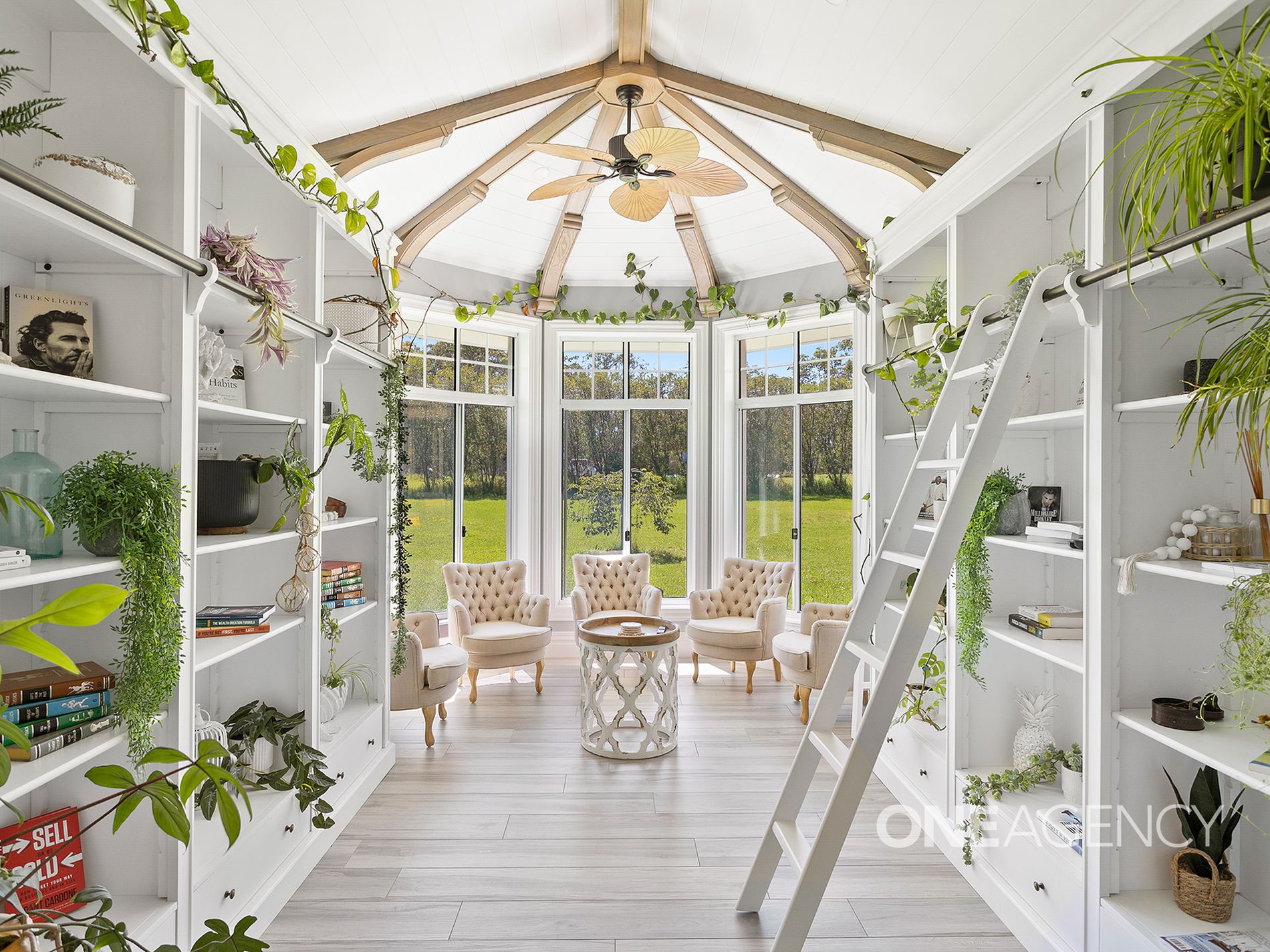 - Elegant sunroom library, offering a peaceful space to enjoy the surroundings