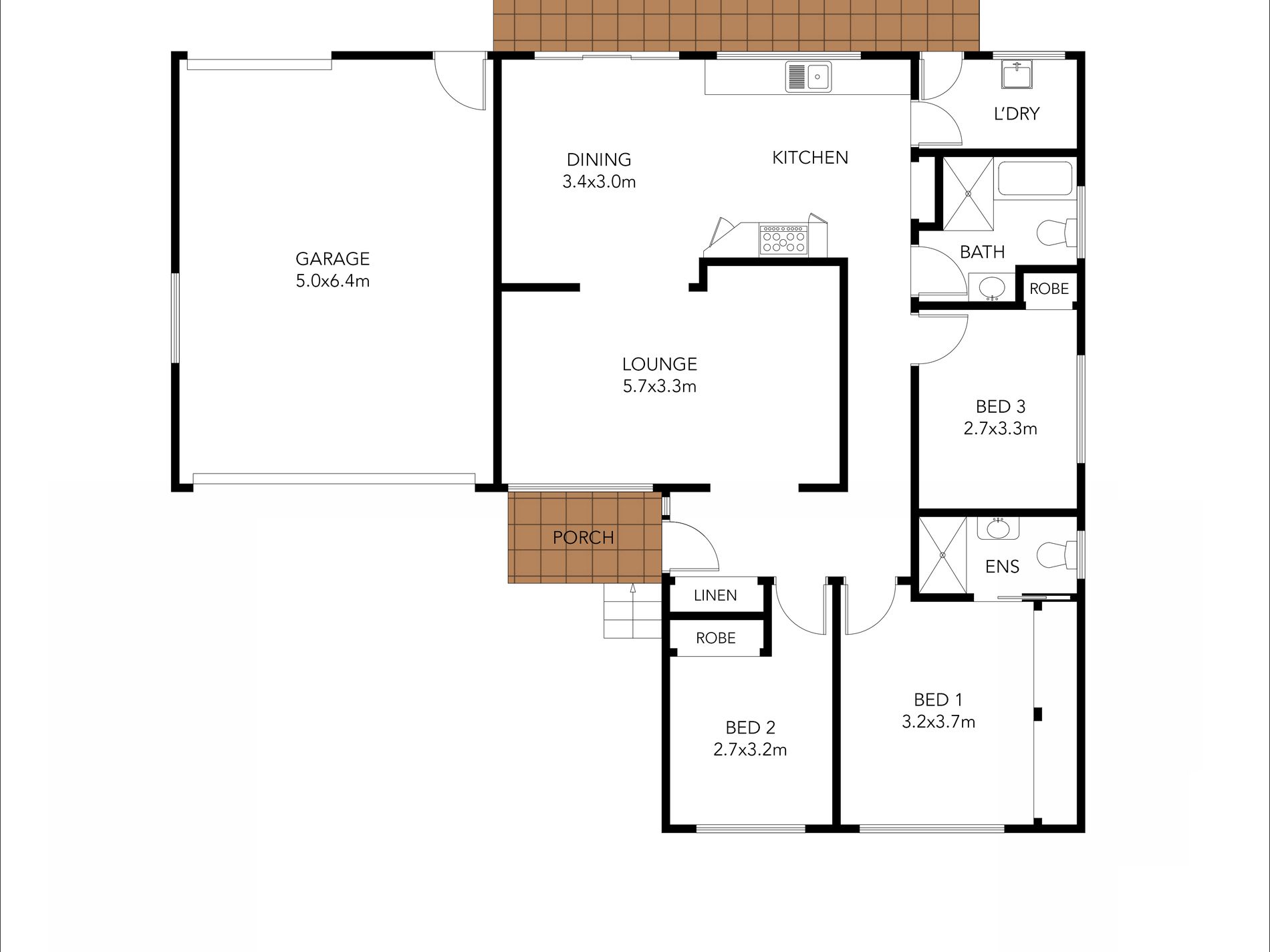 - 3 spacious bedrooms, all with built-in robes and ceiling fans