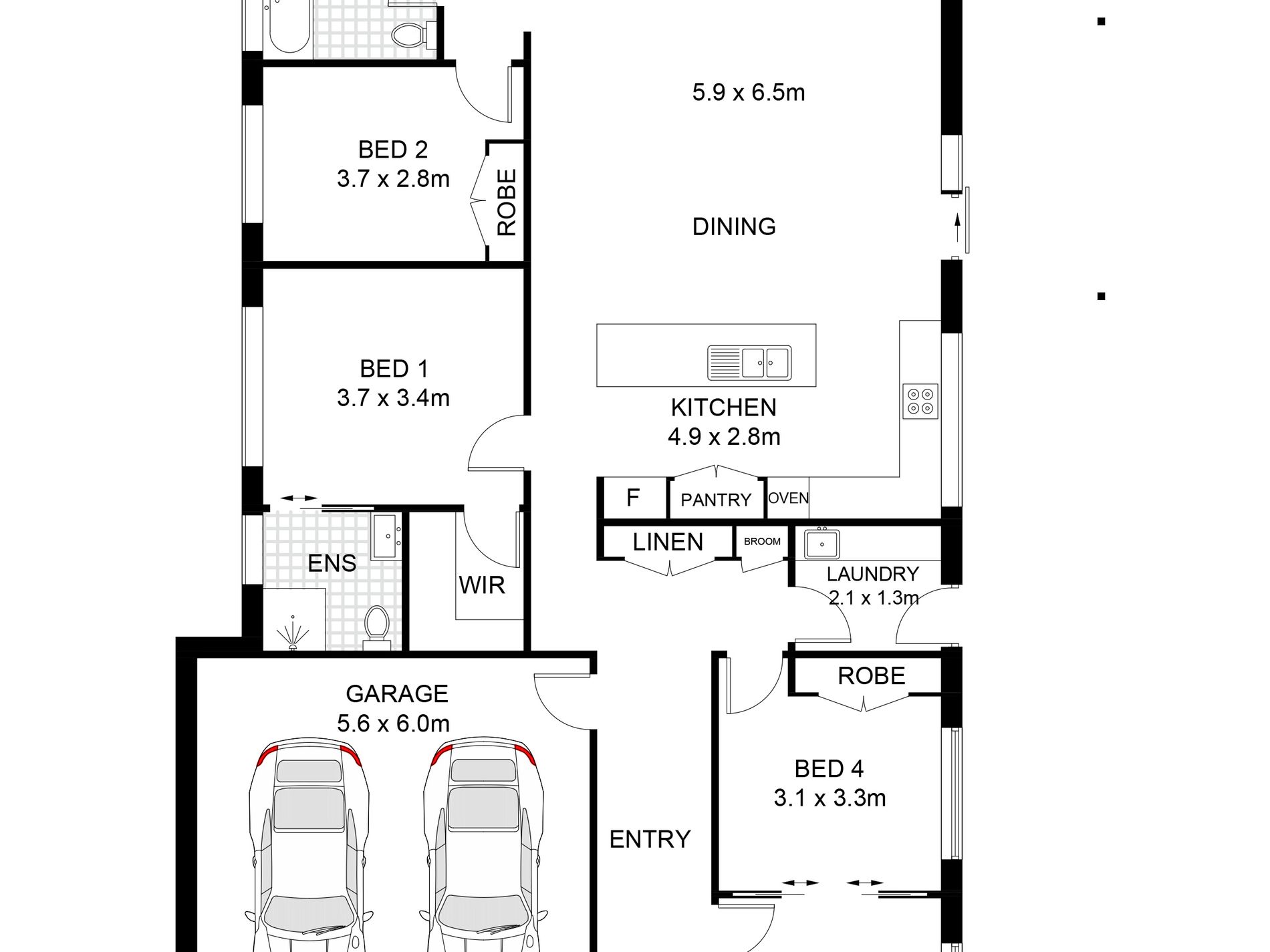 - Four spacious bedrooms, all with built-in wardrobes and ceiling fans