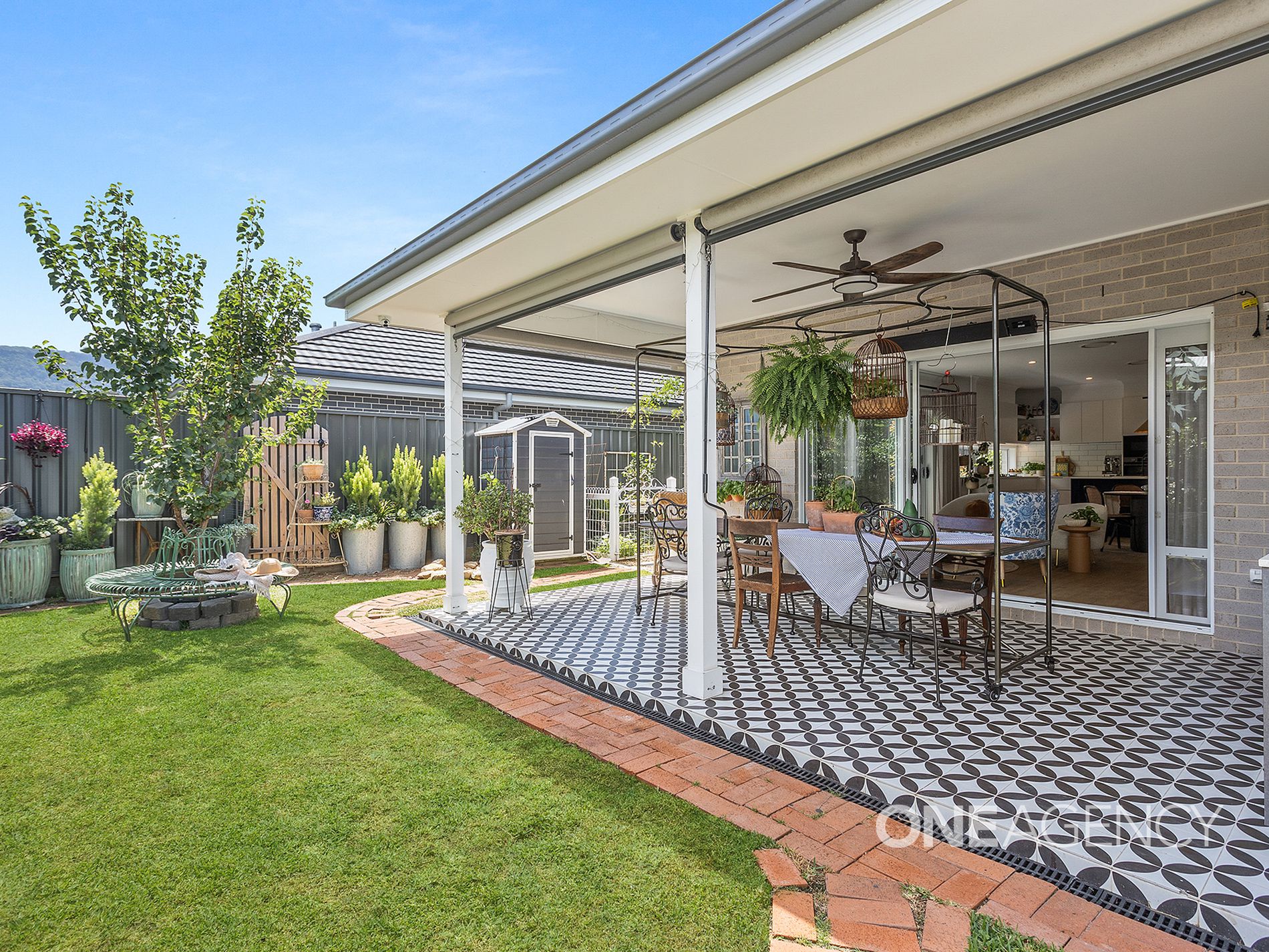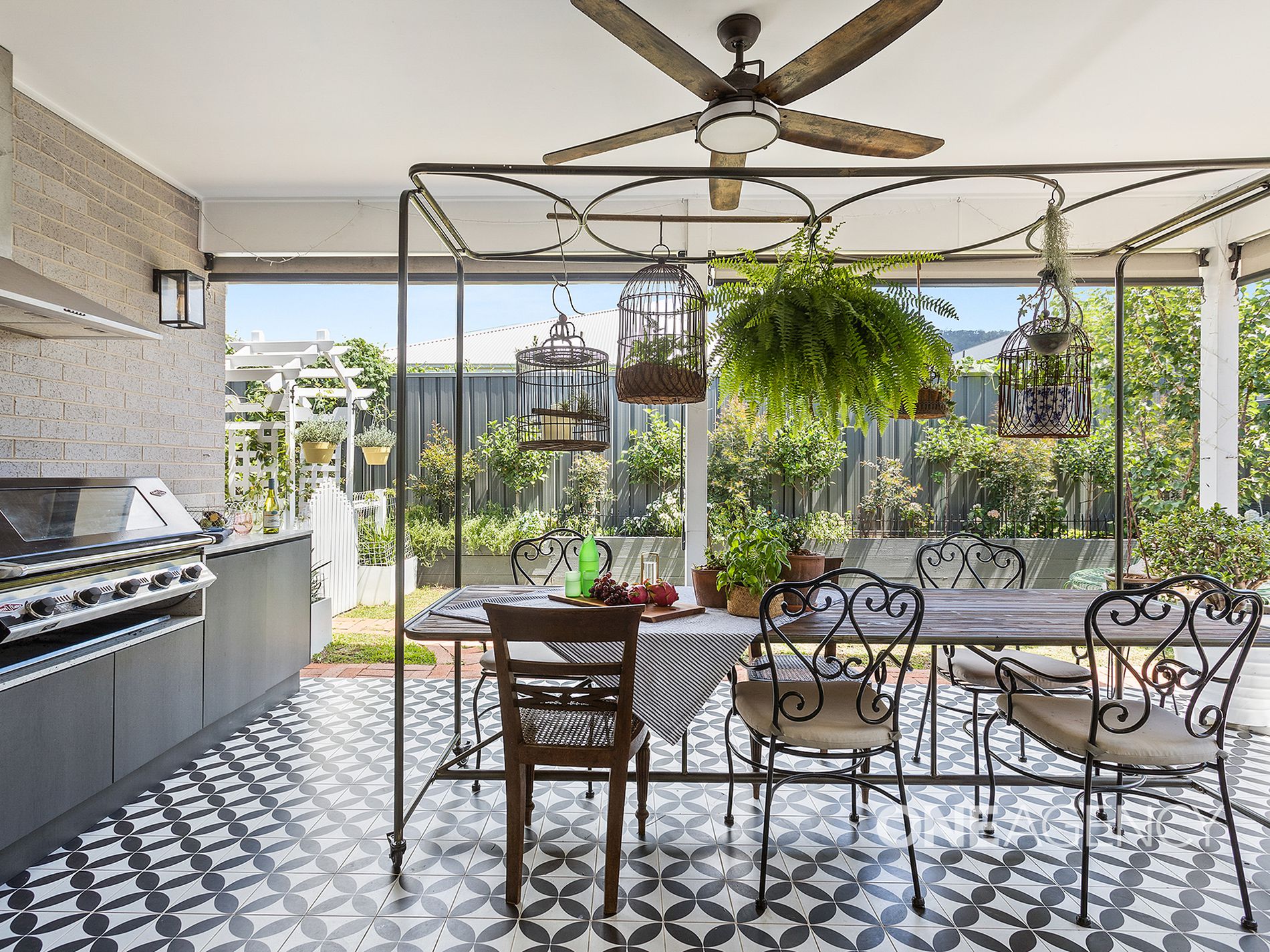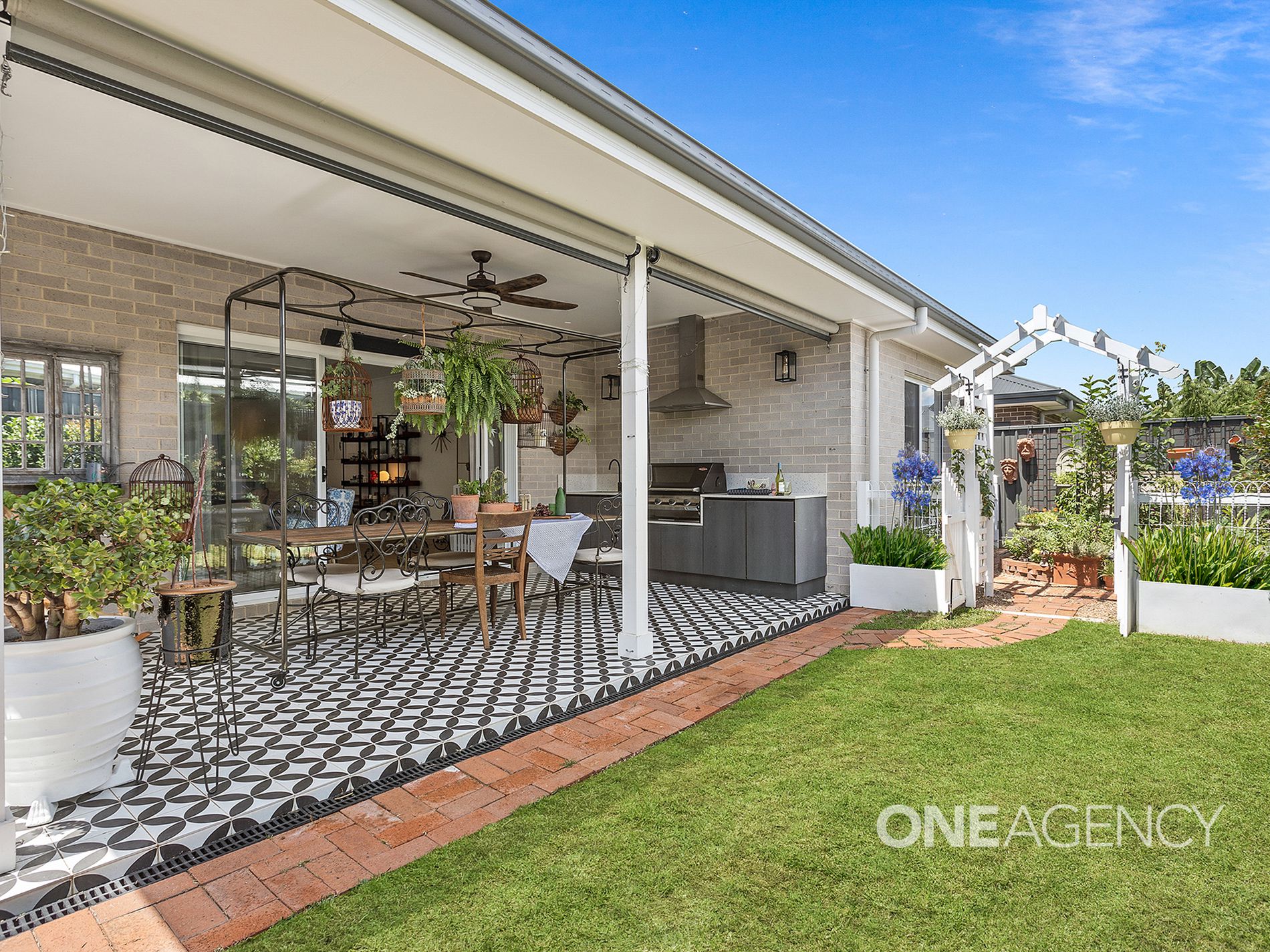 - Covered outdoor entertaining area with built-in BBQ