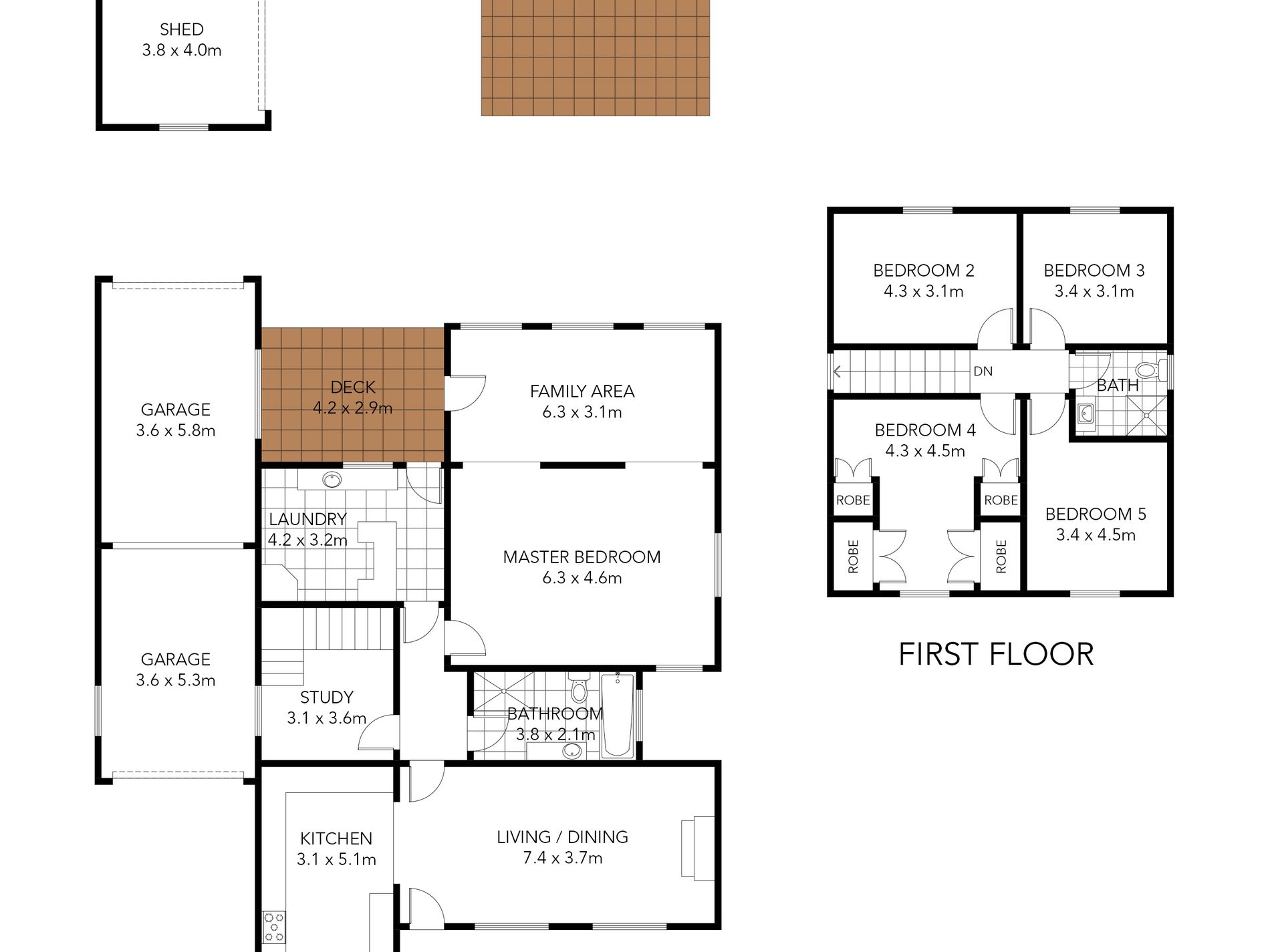 - Double garage with roller-door workshop and extra rear shed