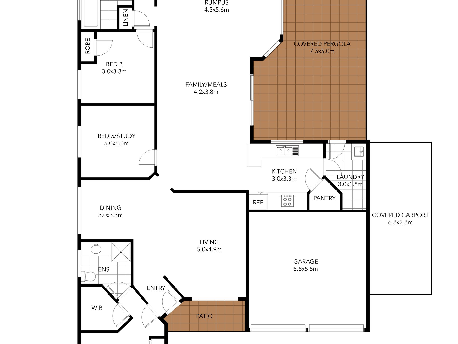 - Five bedrooms, including master with walk-in robe, built-in storage and ensuite