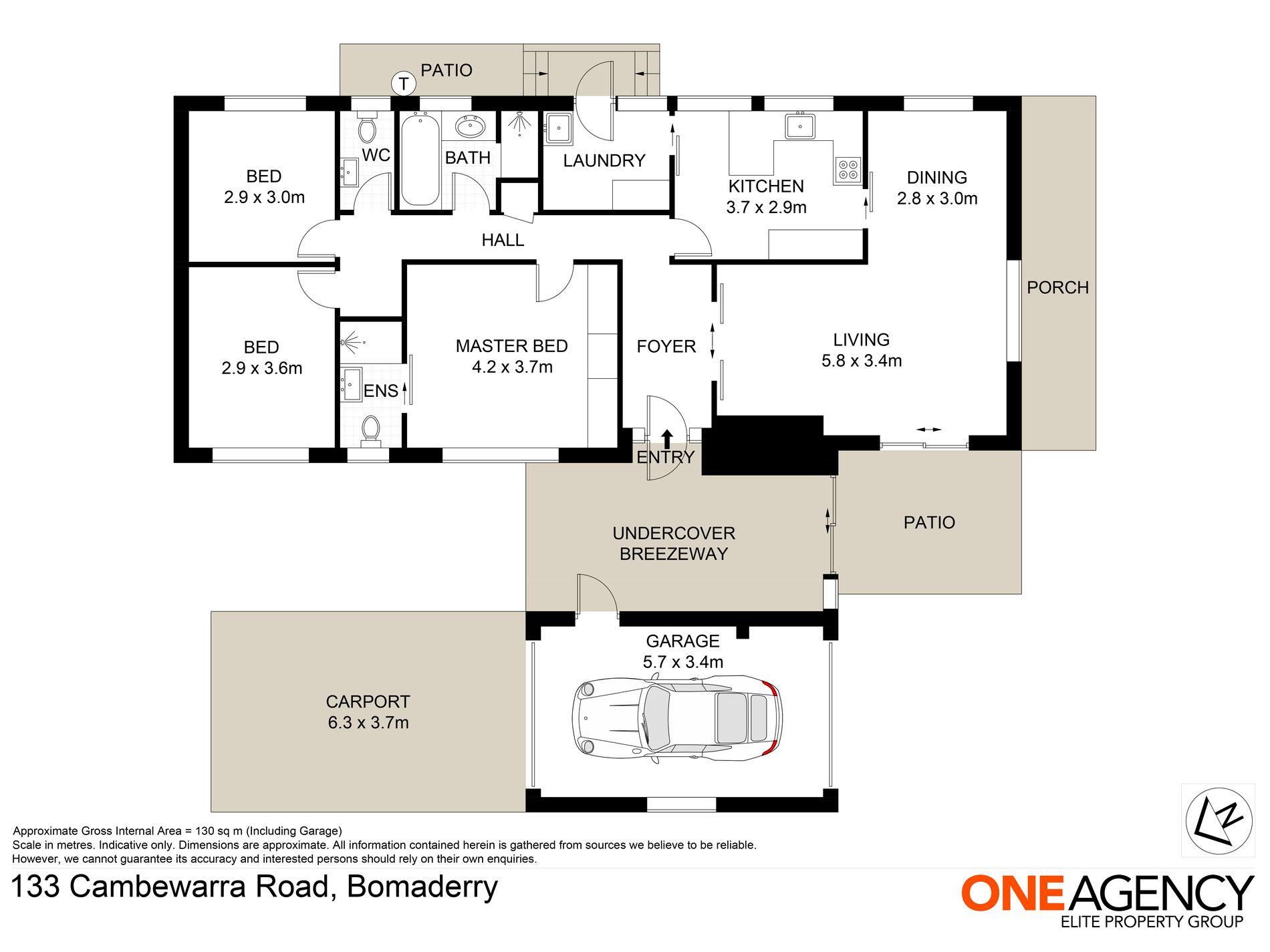 - 3 bedrooms, 2 bathrooms, single garage, single carport