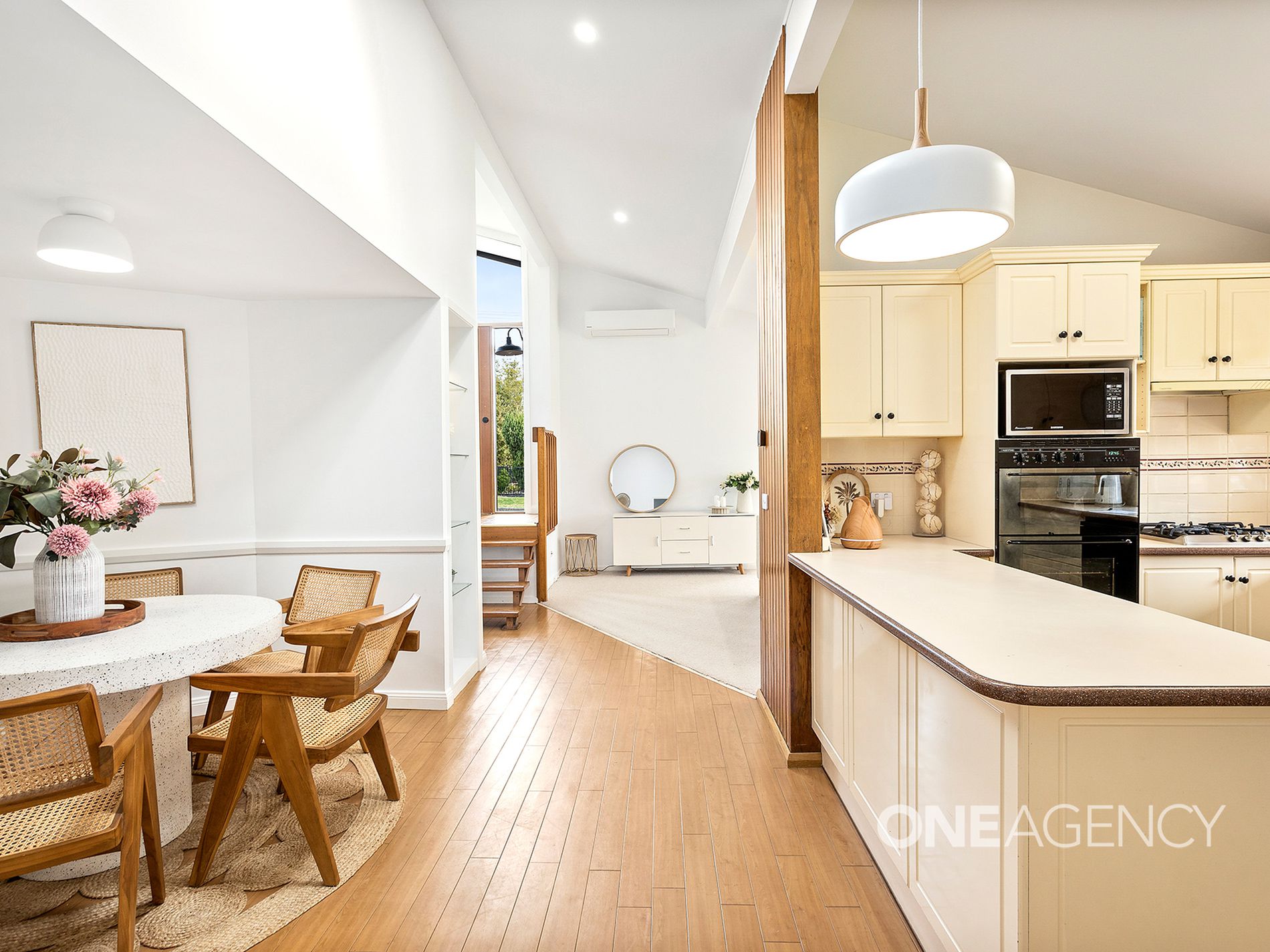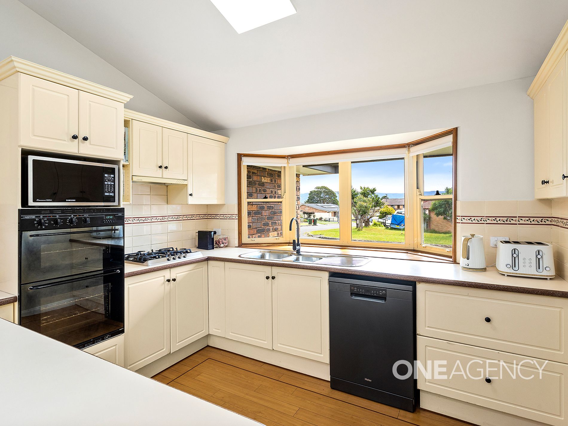 The heart of the home is the updated kitchen, complete with views over the front yard, creating a light and welcoming space to cook and connect. Raked ceilings enhance the spacious feel of the living area, while split system air conditioning ensures comfort year-round.