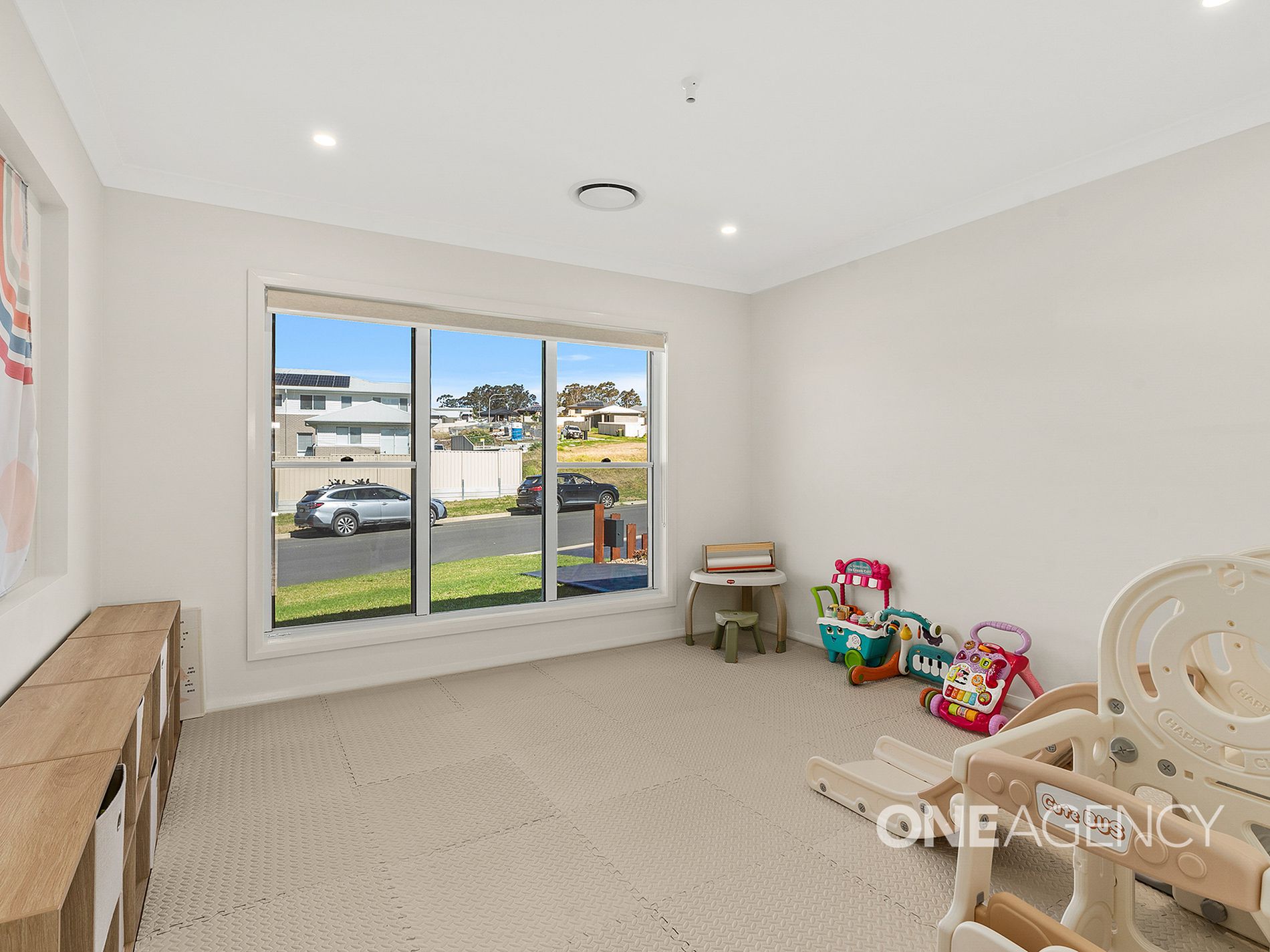 The dedicated theatre room is a true highlight, featuring a recessed wall designed to perfectly frame your television, adding another touch of seamless sleek design. Adjacent to the main living area, the study offers a quiet, practical workspace with custom recessed shelving ideal for working from home or managing family life with ease.