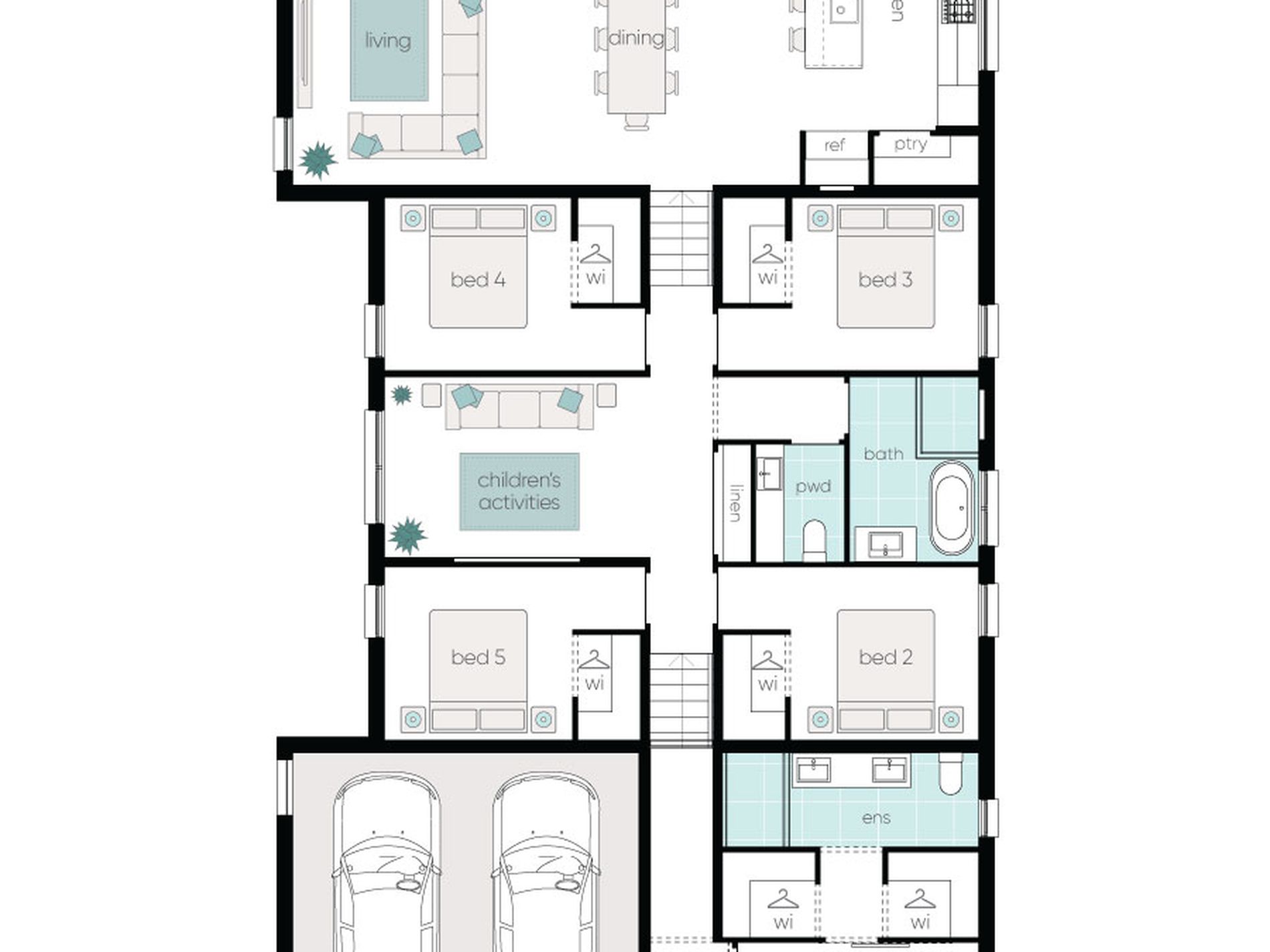 - Master suite with his and hers walk-in robes and ensuite with double vanity