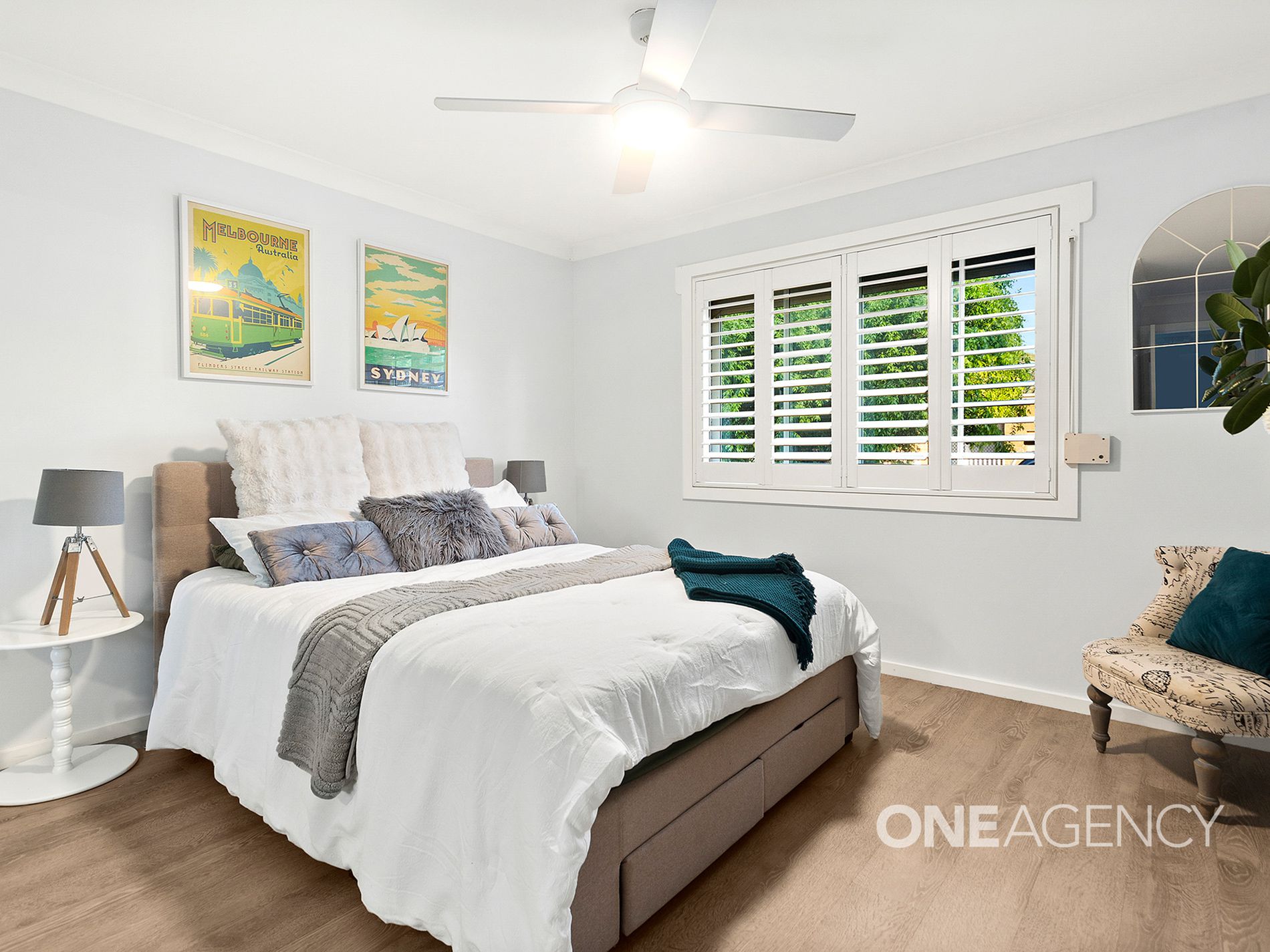 - Three bedrooms, each with built-in wardrobes, ceiling fans and plantation shutters