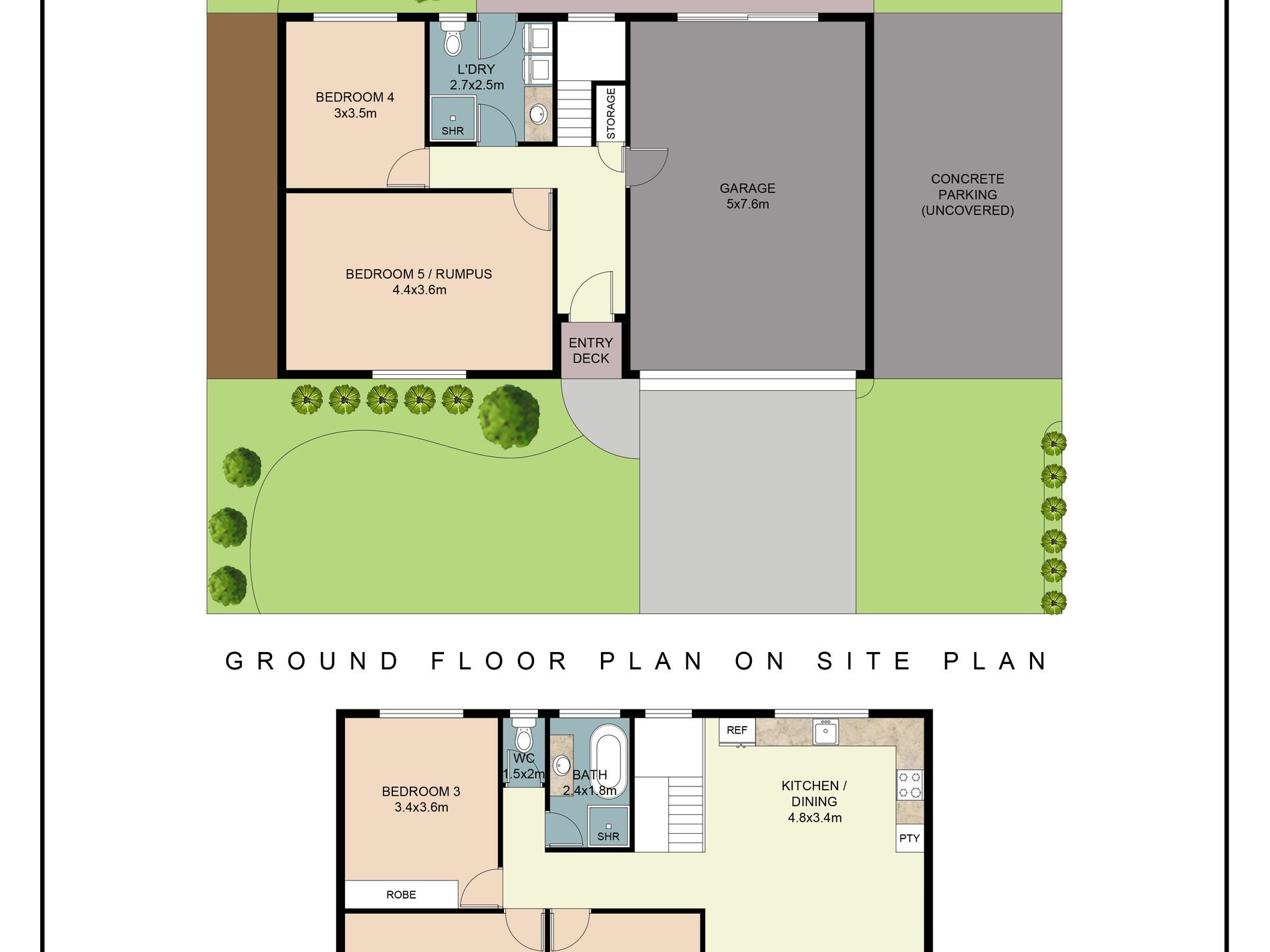 - Large garage with polished concrete flooring