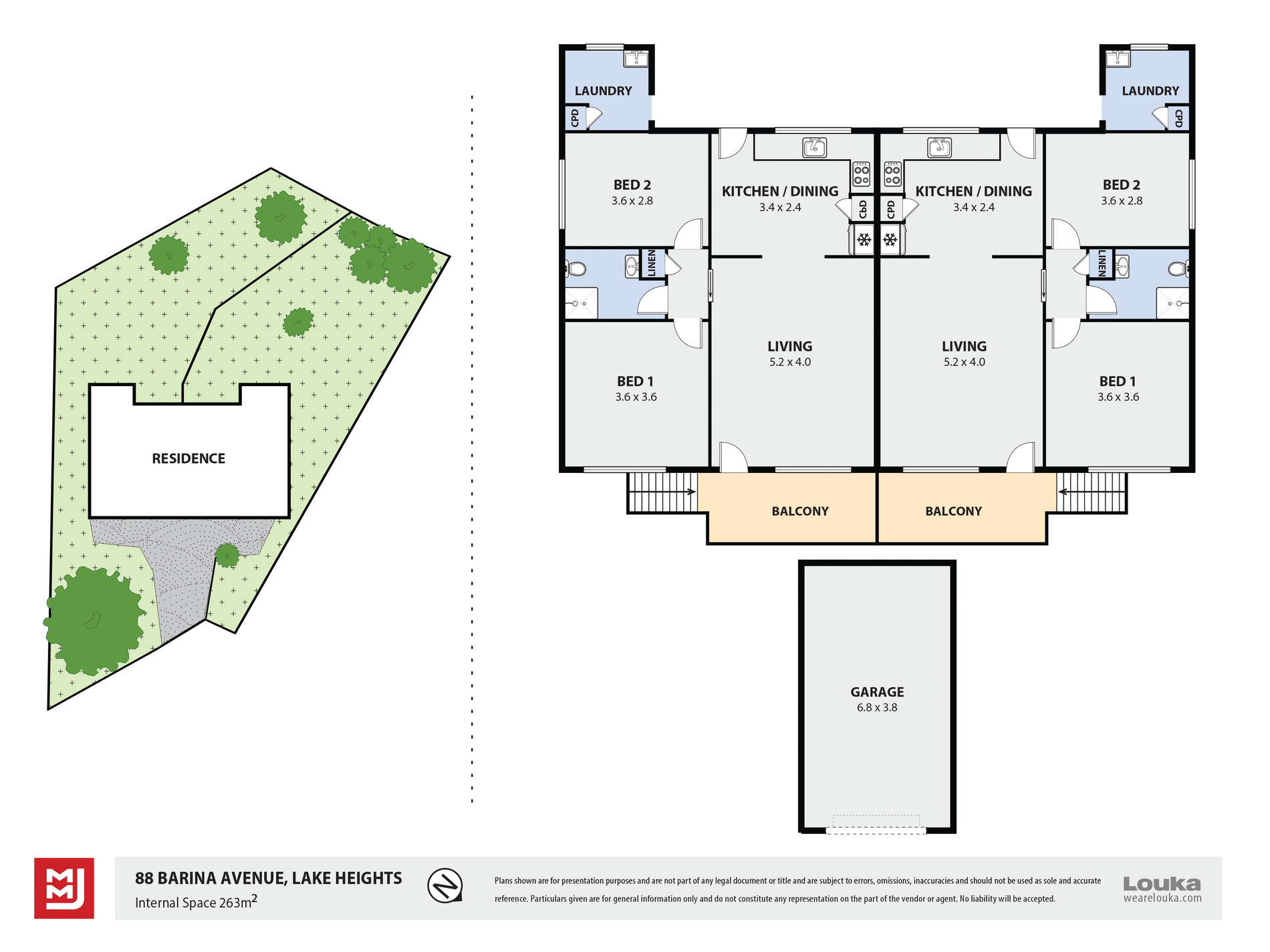 - Separate single garages and individual external laundries