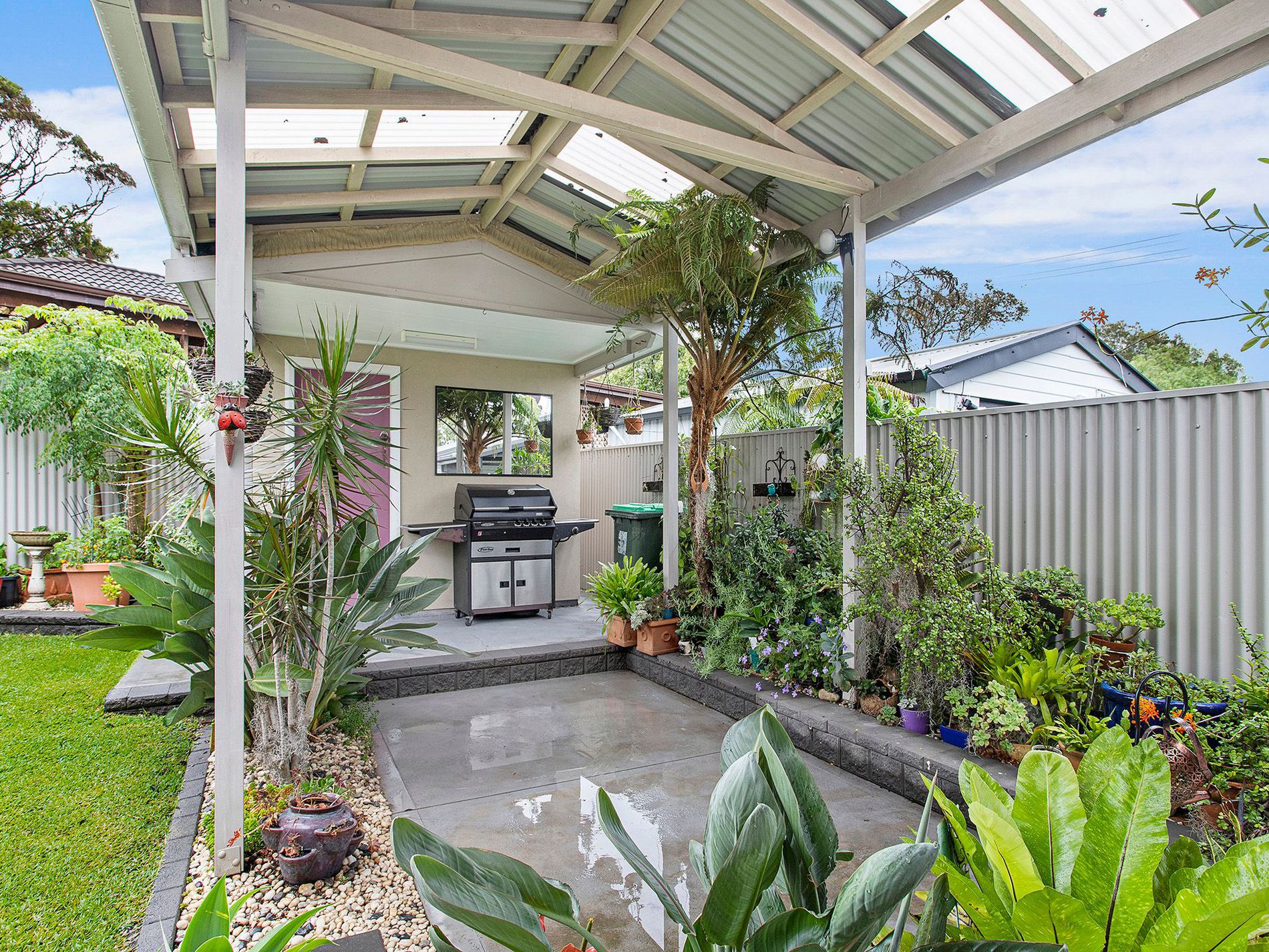 - Covered entertaining area with view of manicured gardens