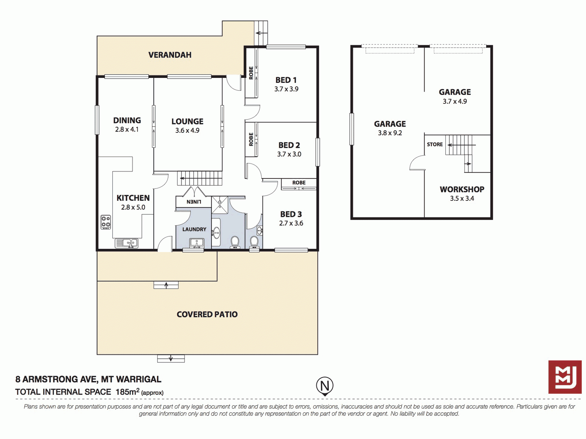 Double lock-up garage with internal access and off street parking