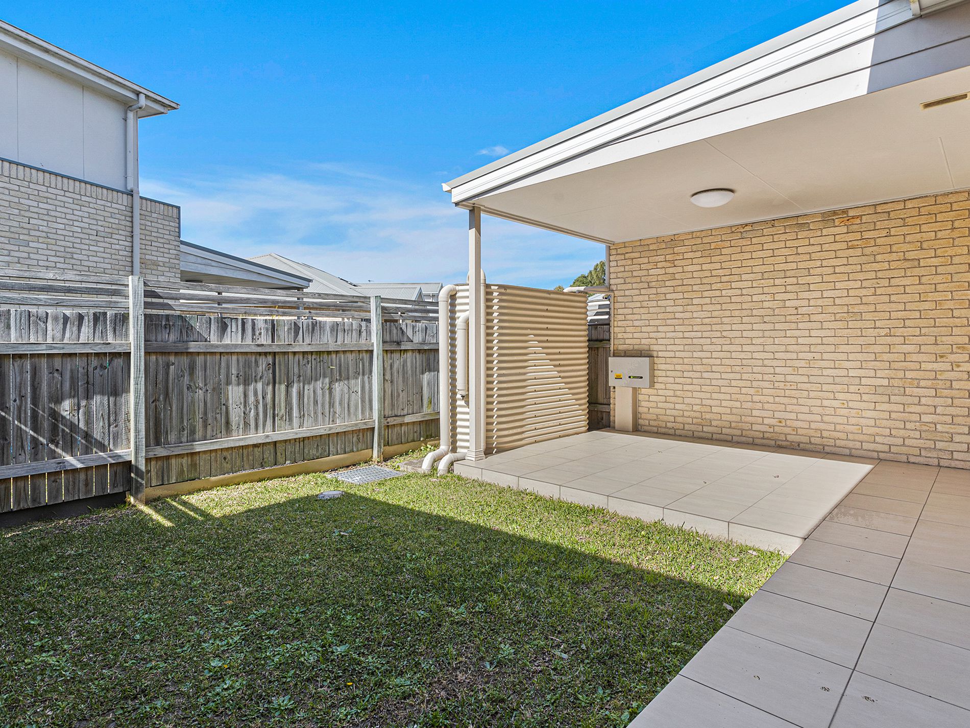 - Covered outdoor area with adjacent private backyard, and a water tank connected for use in washing, dishwasher and toilet functions