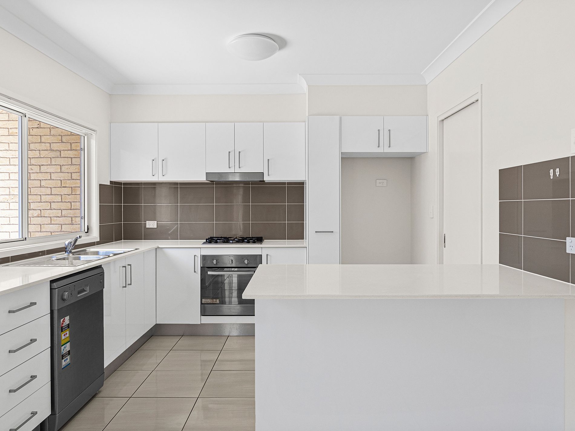 - Modern kitchen with ample cupboard space, dishwasher, gas cooking appliances and a breakfast bar