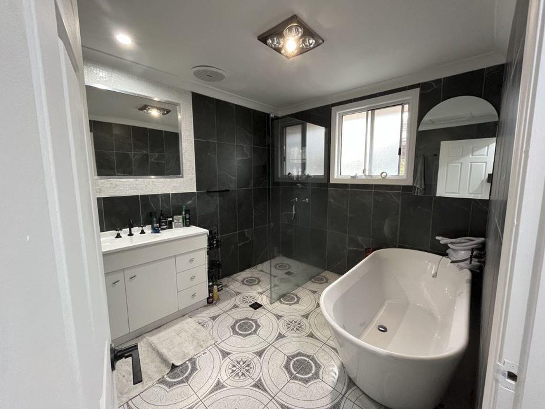 - Modern bathroom with bathtub and separate shower