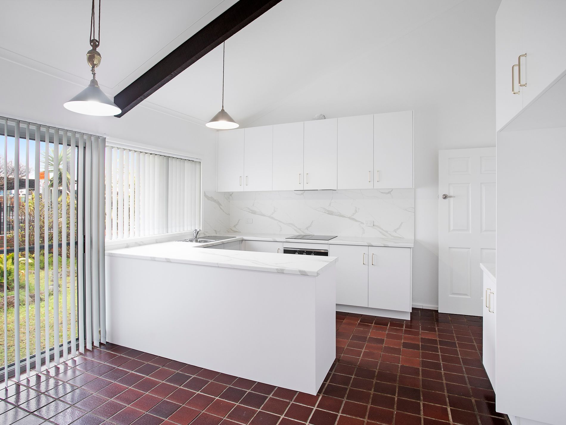 - Practical kitchen with ample storage and electric stovetop