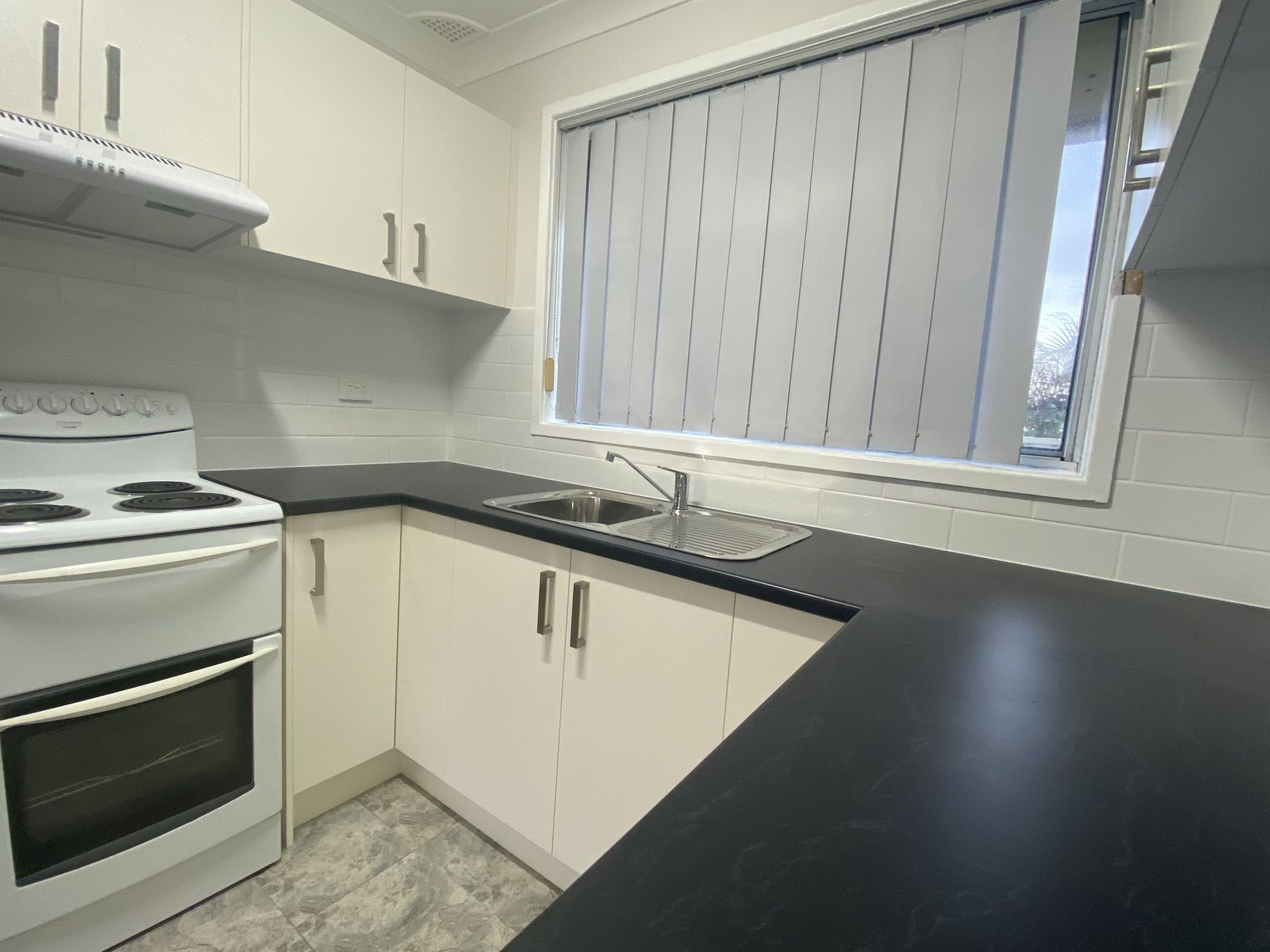 - Kitchen with ample cupboard space and electric cooking appliances