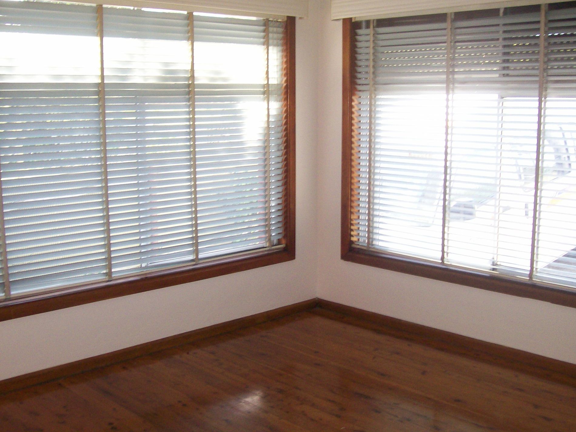 - Large bedroom with polished timber flooring