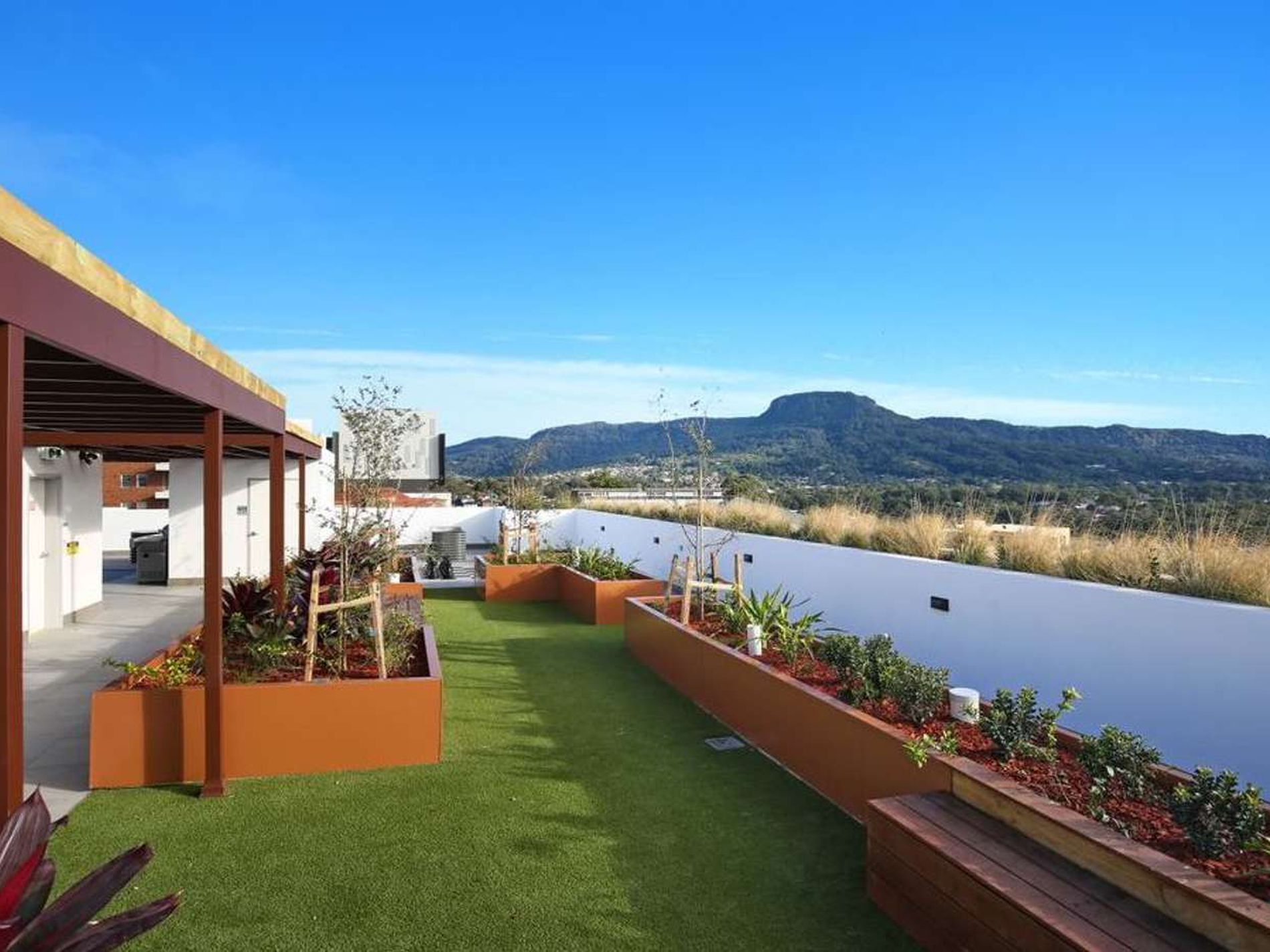 - Open plan living area flowing onto private balcony with gas points, and access stairs to your own private rooftop terrace featuring gardens, BBQ, and panoramic views of the Wollongong and surrounding areas.