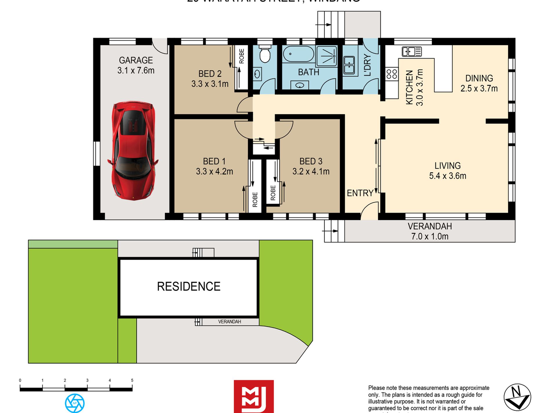 - Internal laundry with wash tub and external access to yard