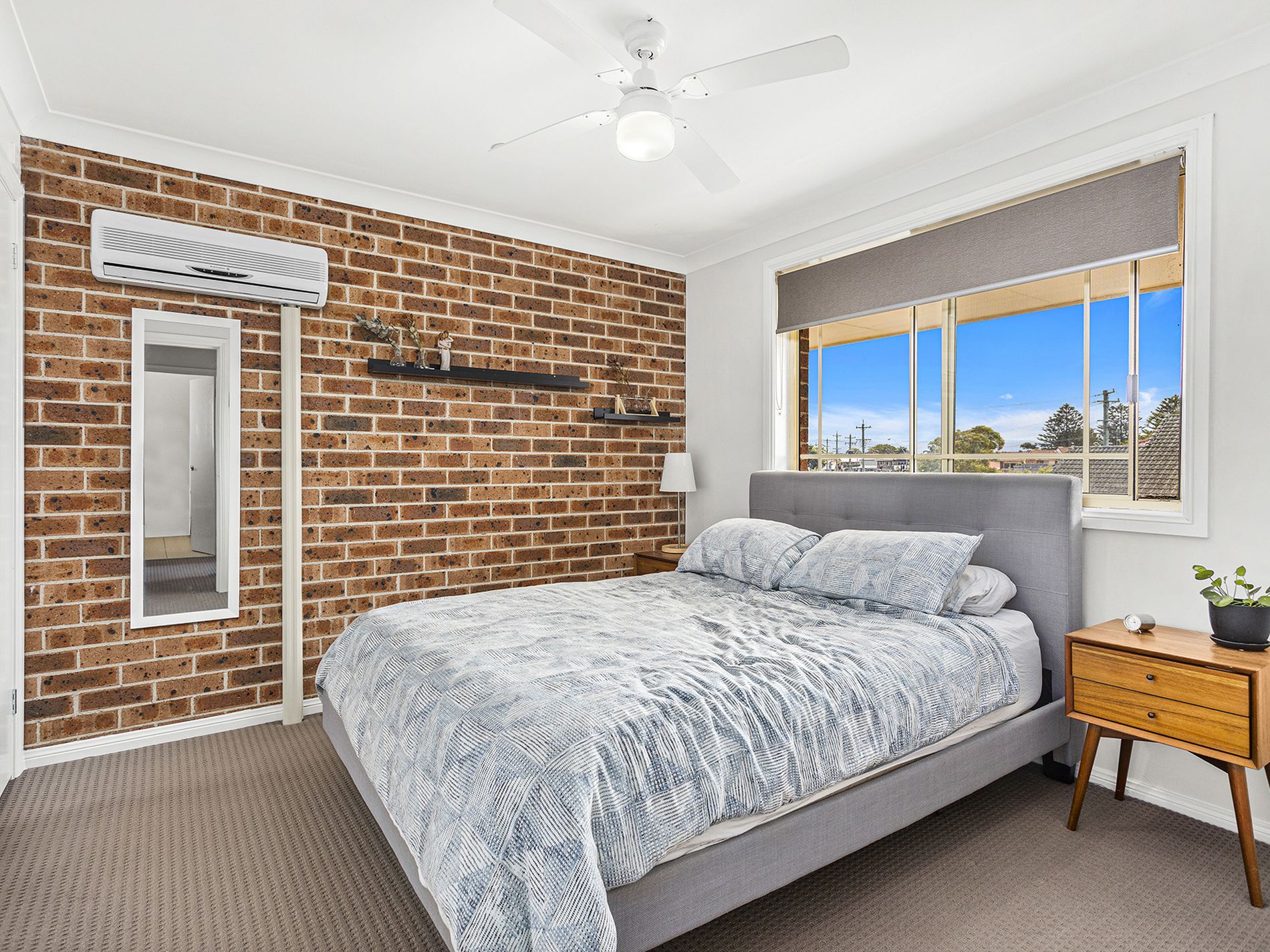 - Two bedrooms both with built in robes, and air-conditioning and ceiling fan to the main bedroom