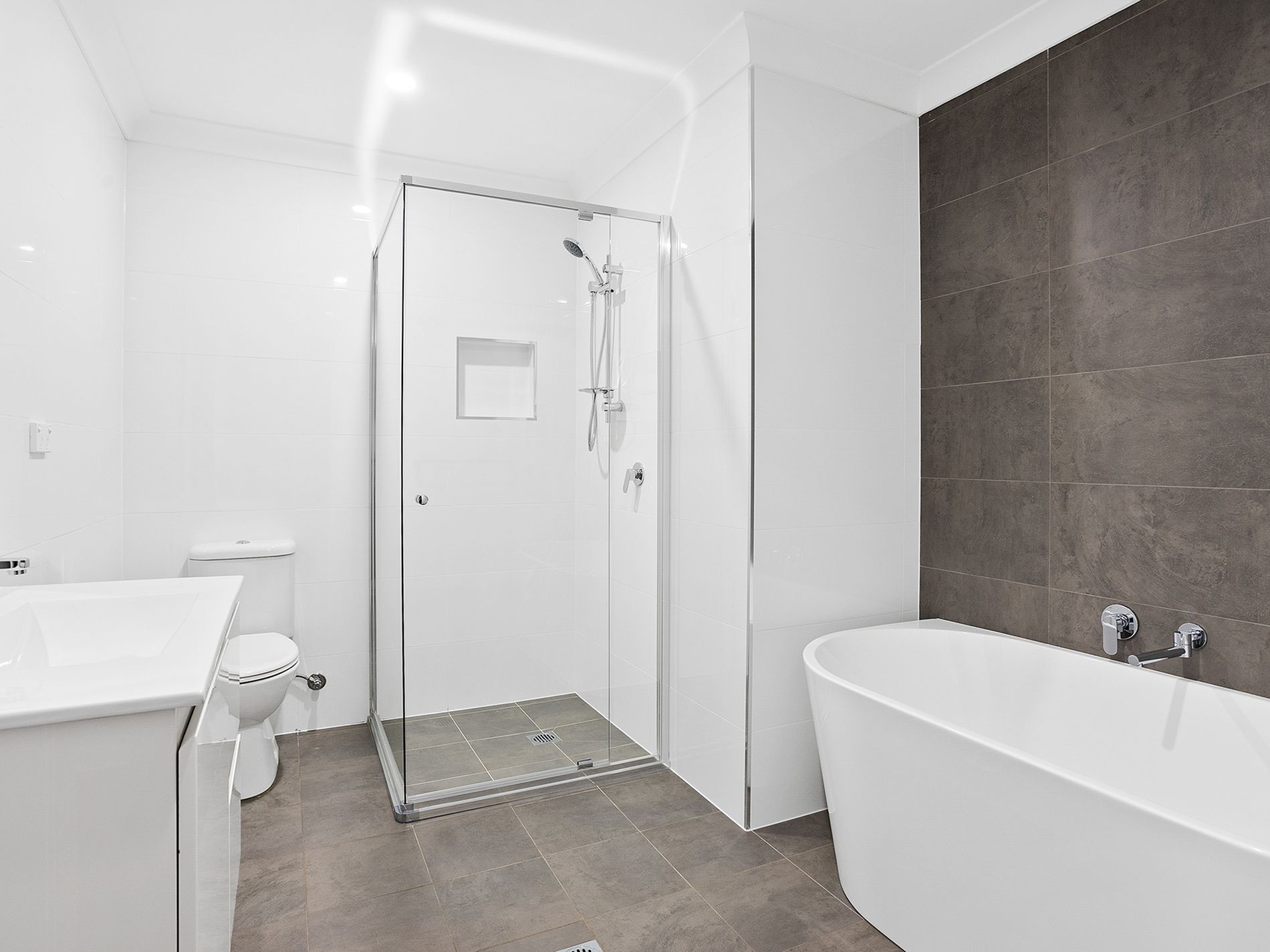 - Modern and spacious main bathroom with a large bathtub, and an ensuite off the master bedroom.