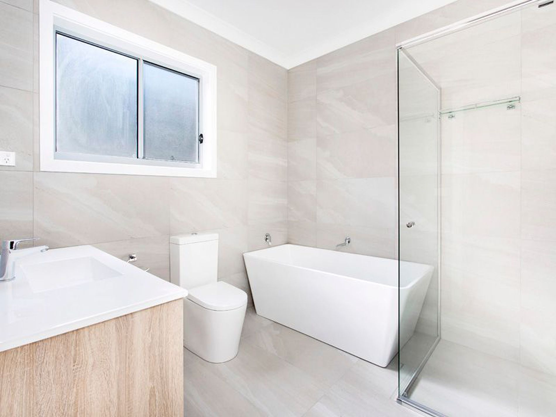 - Modern bathroom with full size bath