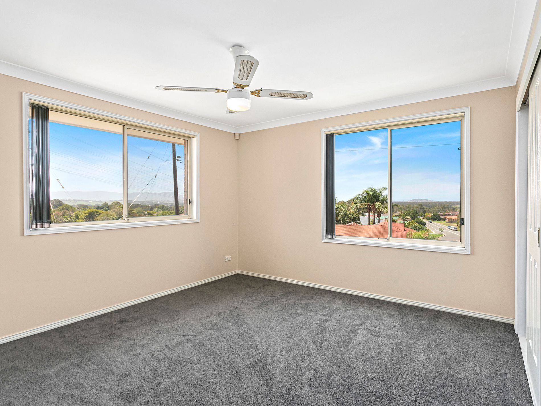 - Two bedrooms with ceiling fans and built-ins