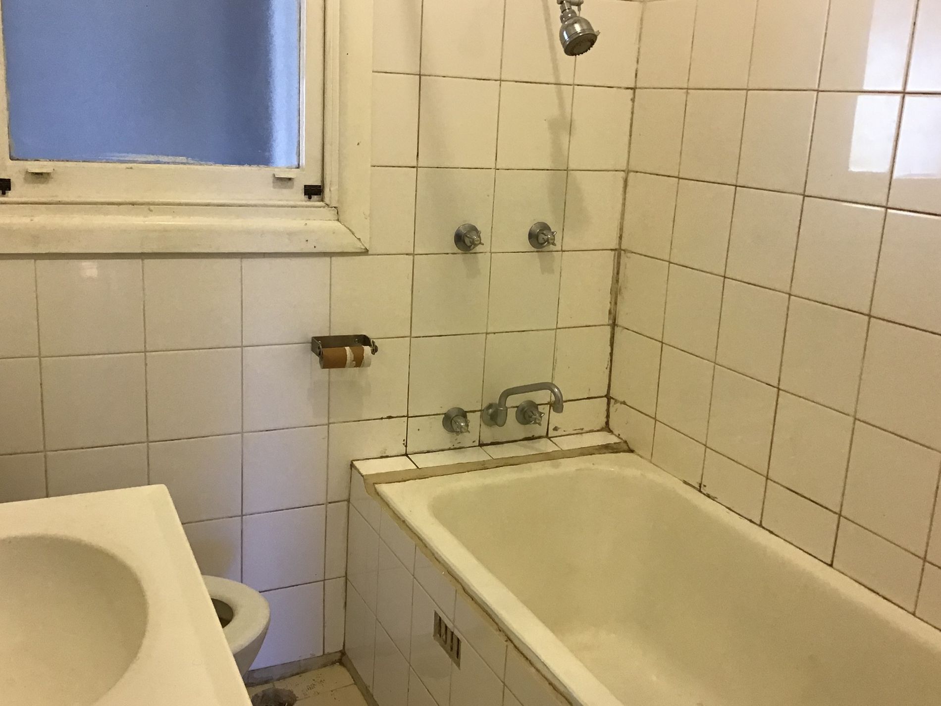 - Bathroom with shower over bath