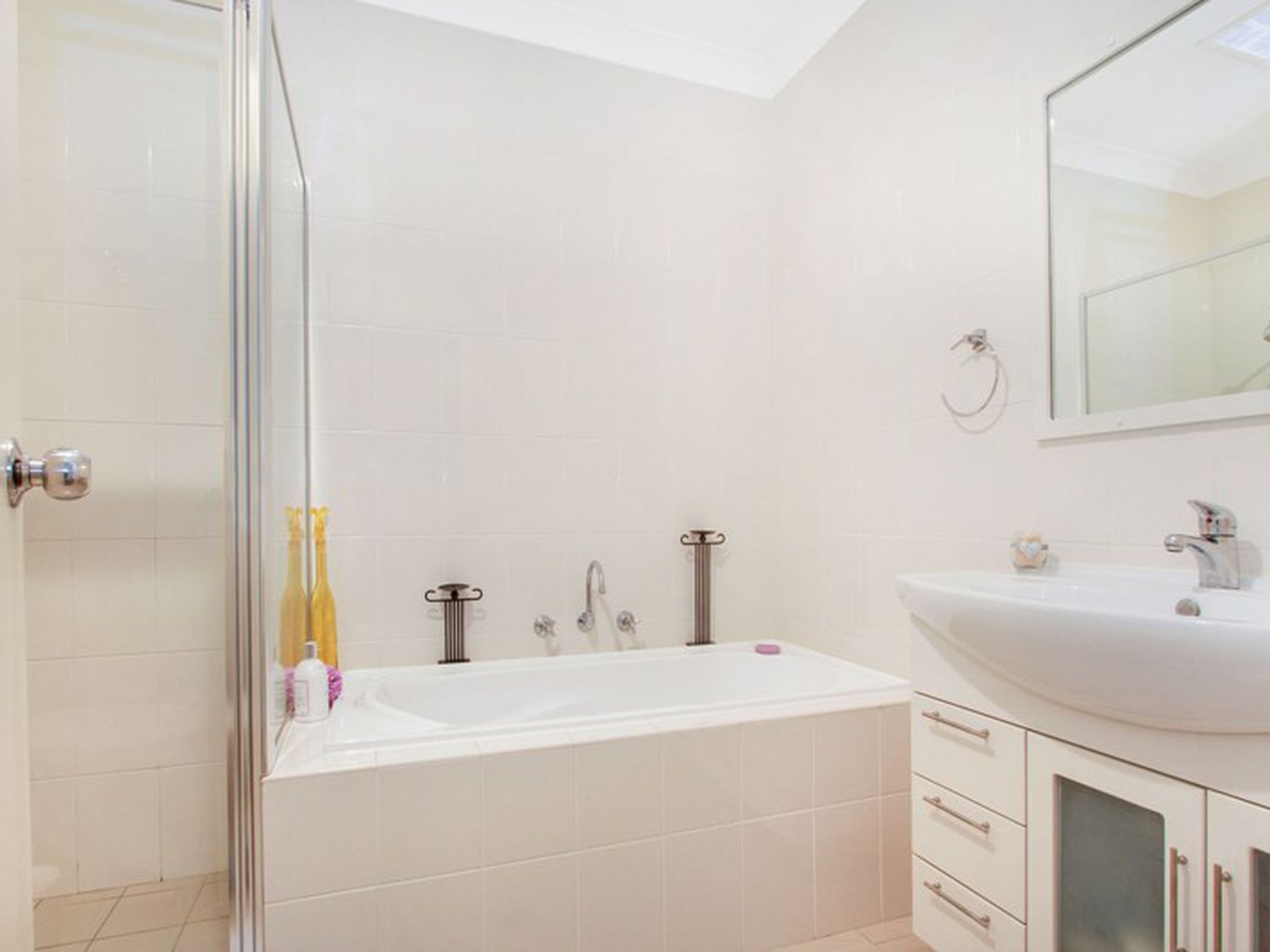 - Bathroom features full sized bath and separate shower
