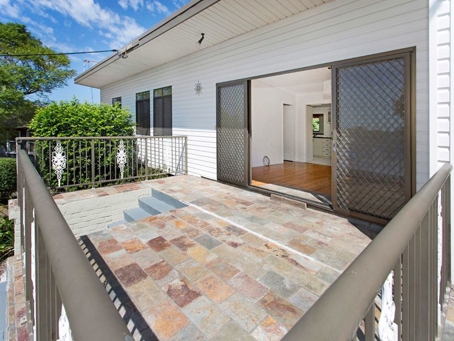 - Low maintenance rear garden, sun filled covered deck