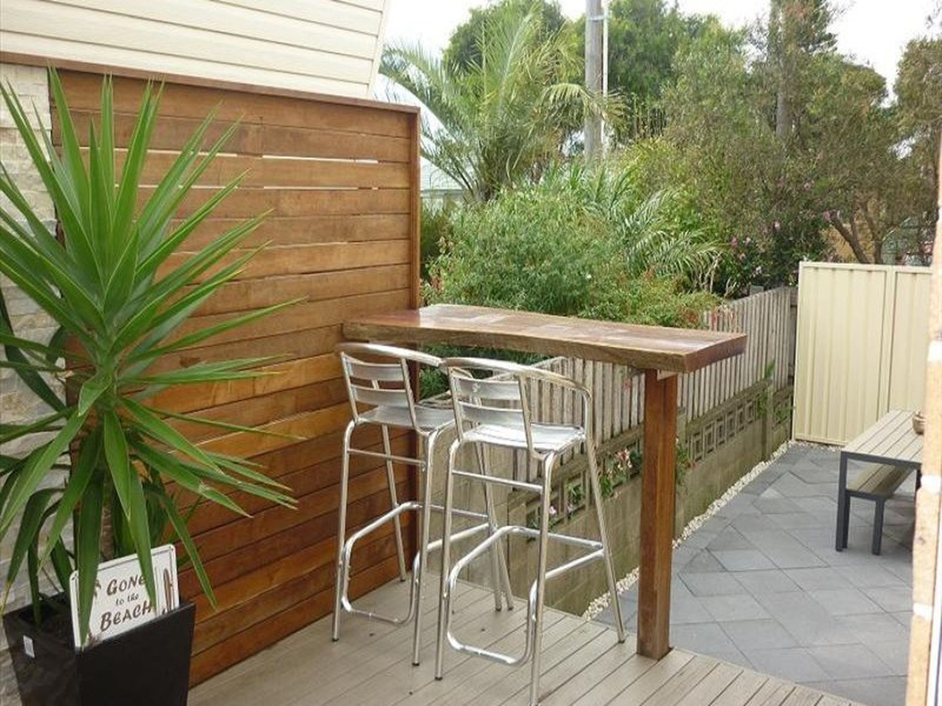 - large private timber deck with built in bar and paved courtyard for entertaining.