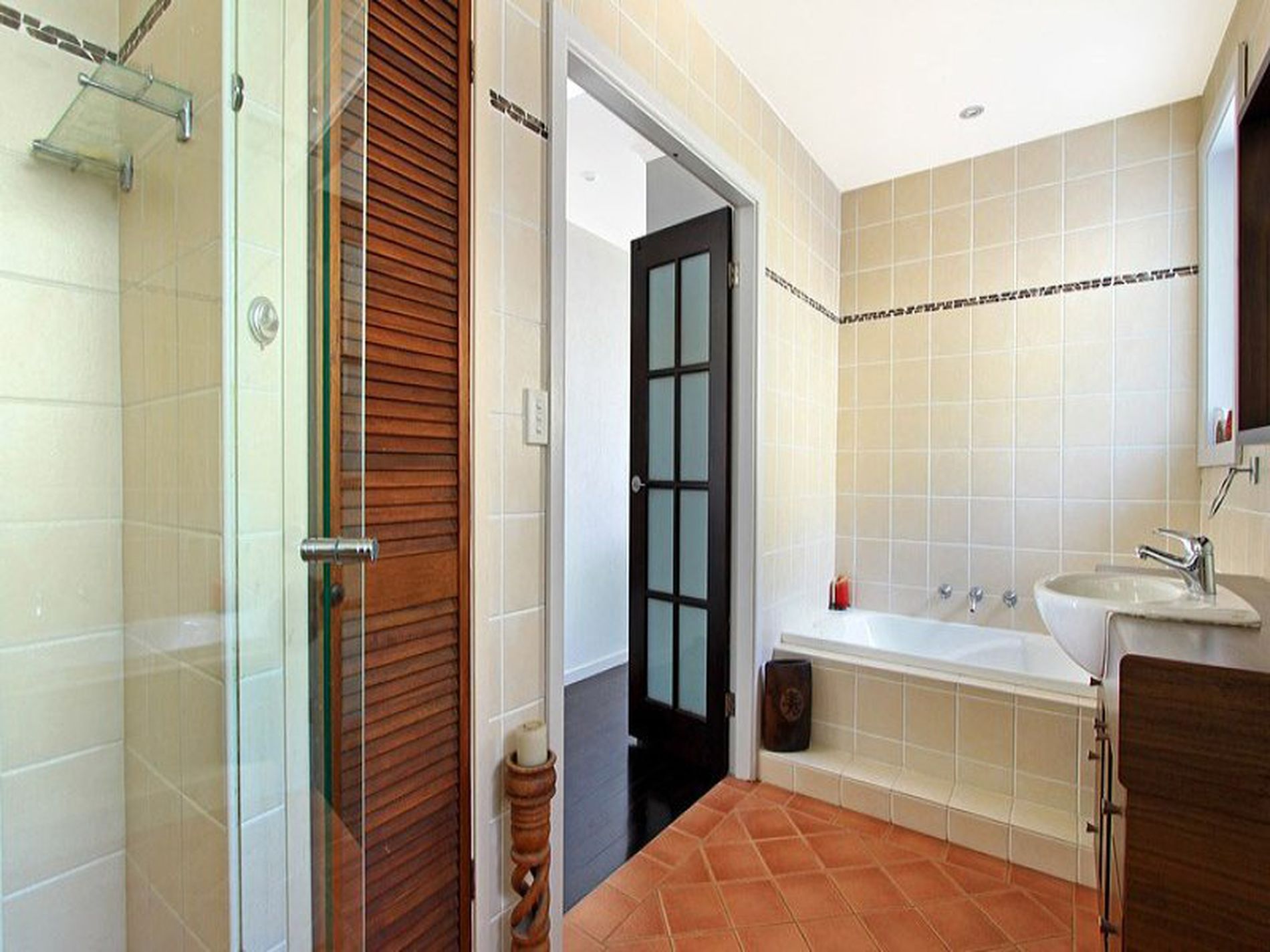 - Contemporary bathroom with full size bath