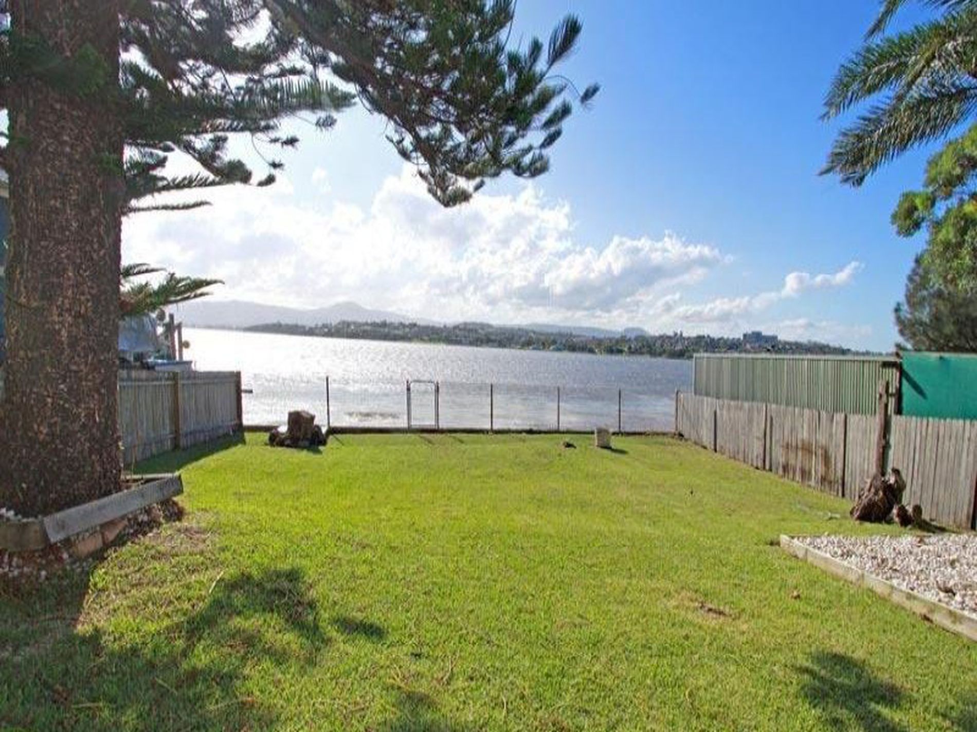 - Large grassed backyard which ends where the water begins