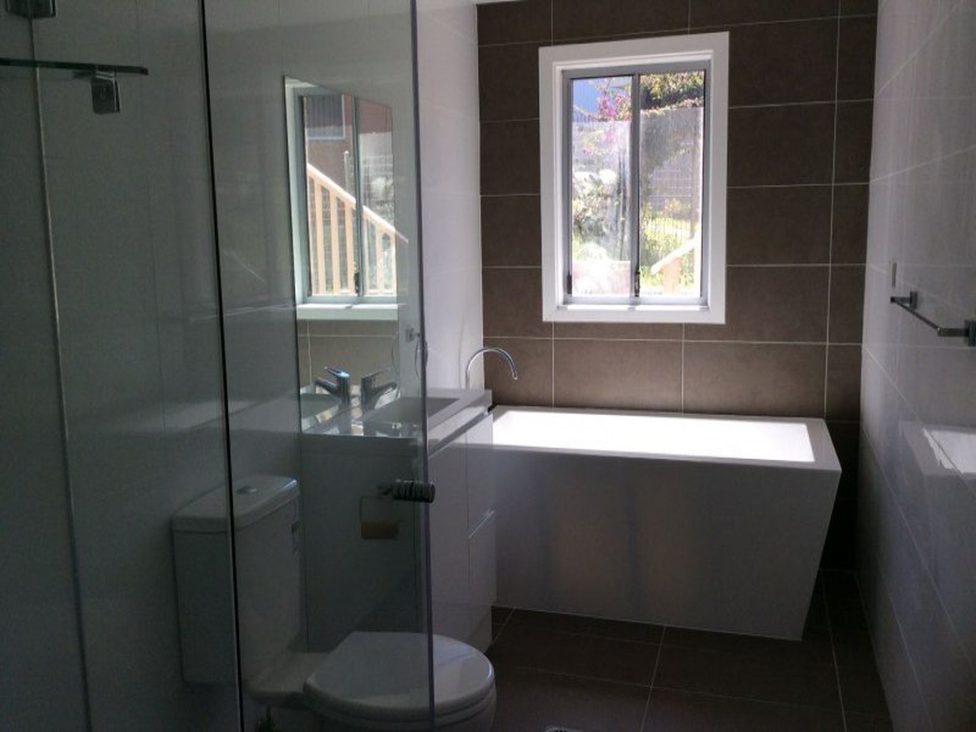 - Modern bathroom with large bath