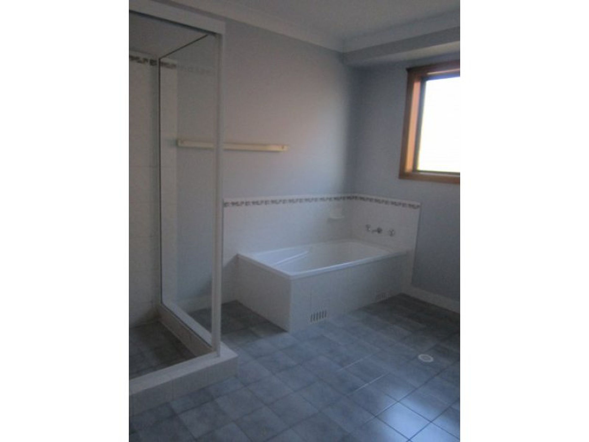 - large bathroom with separate bath tub/shower