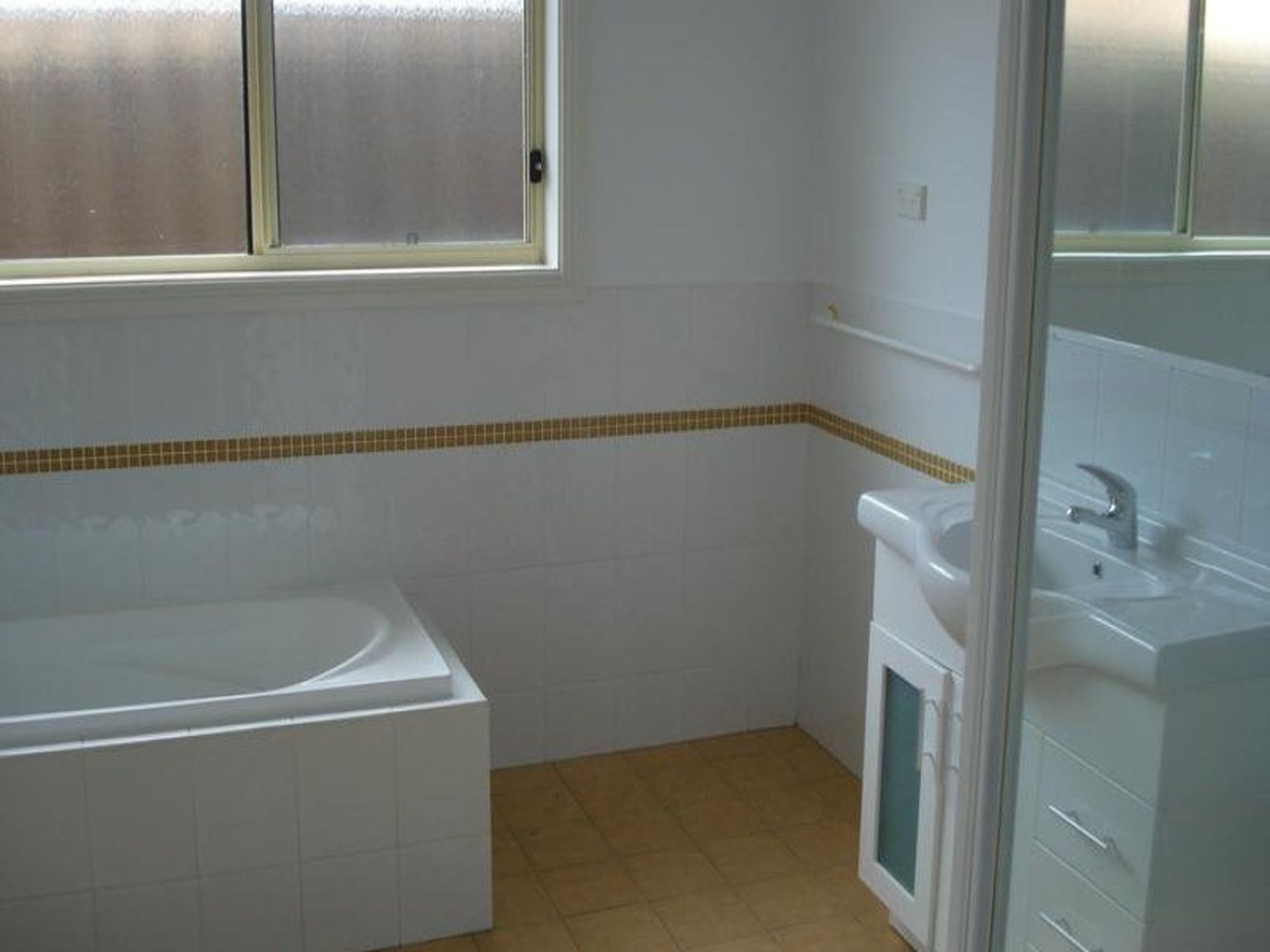 - Split system air conditioner, internal laundry, bathroom with bathtub