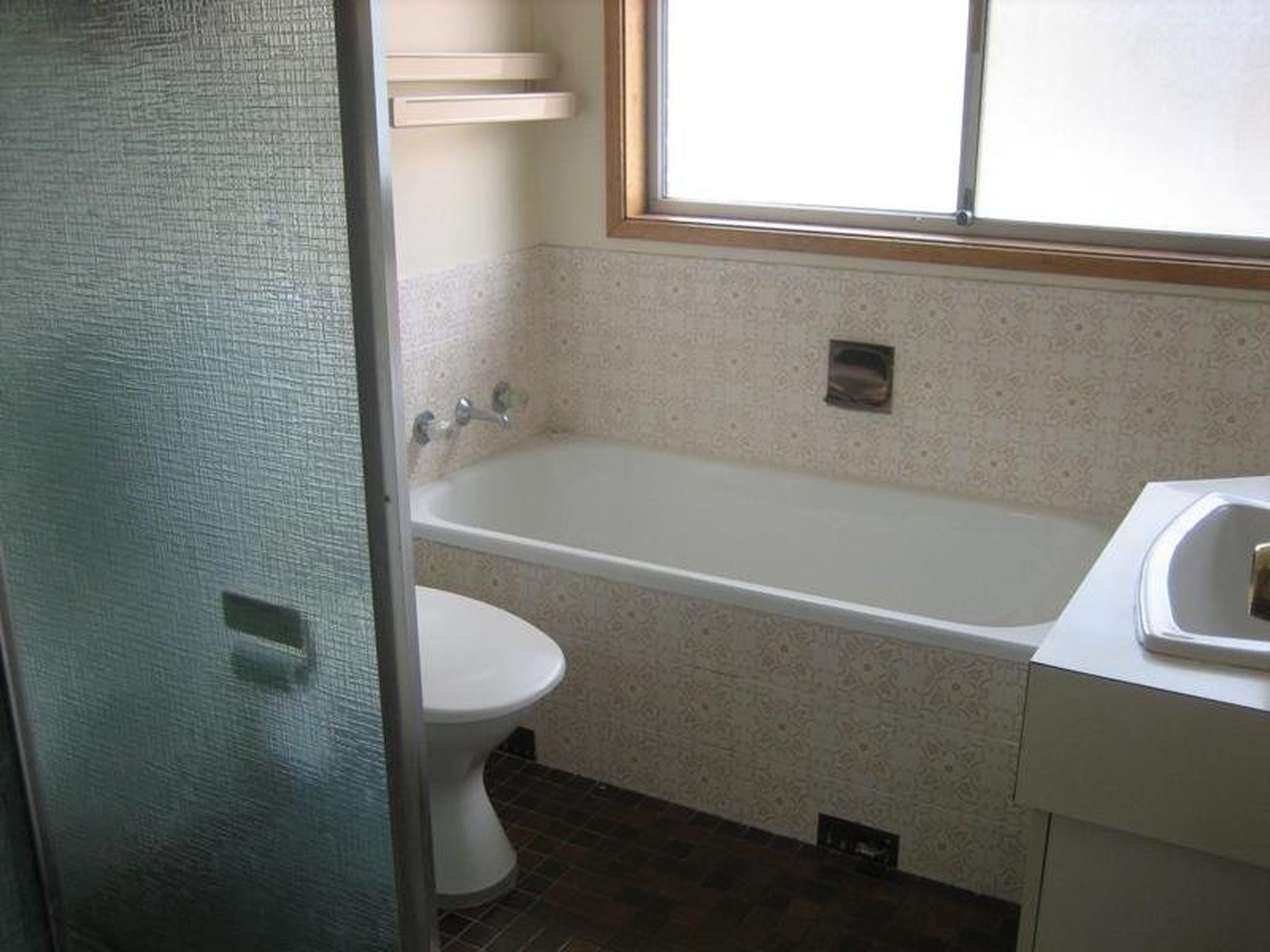 - Tidy bathroom with full size bath