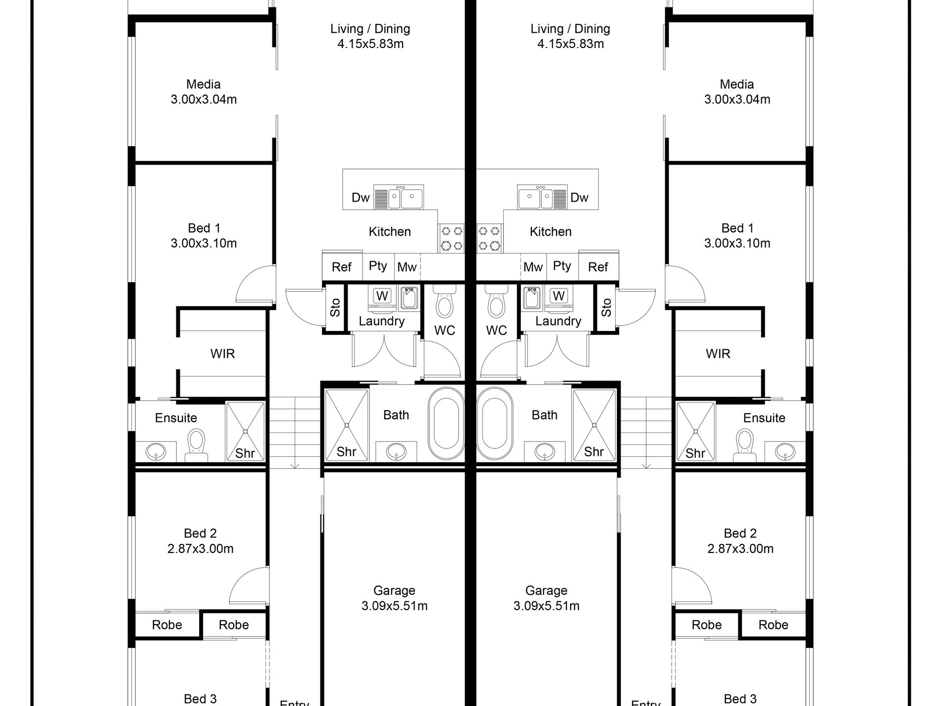 Each home features three bedrooms, two bathrooms and a single garage with high ceilings and ducted air throughout. The clever floorplan is highly flexible and includes a dedicated media room with stylish barn doors that would make an ideal fourth bedroom or second living space, depending on your needs. With a thoughtful open plan design, the kitchen is centrally positioned and includes quality appliances, good storage and a skylight that draws in soft natural light.
