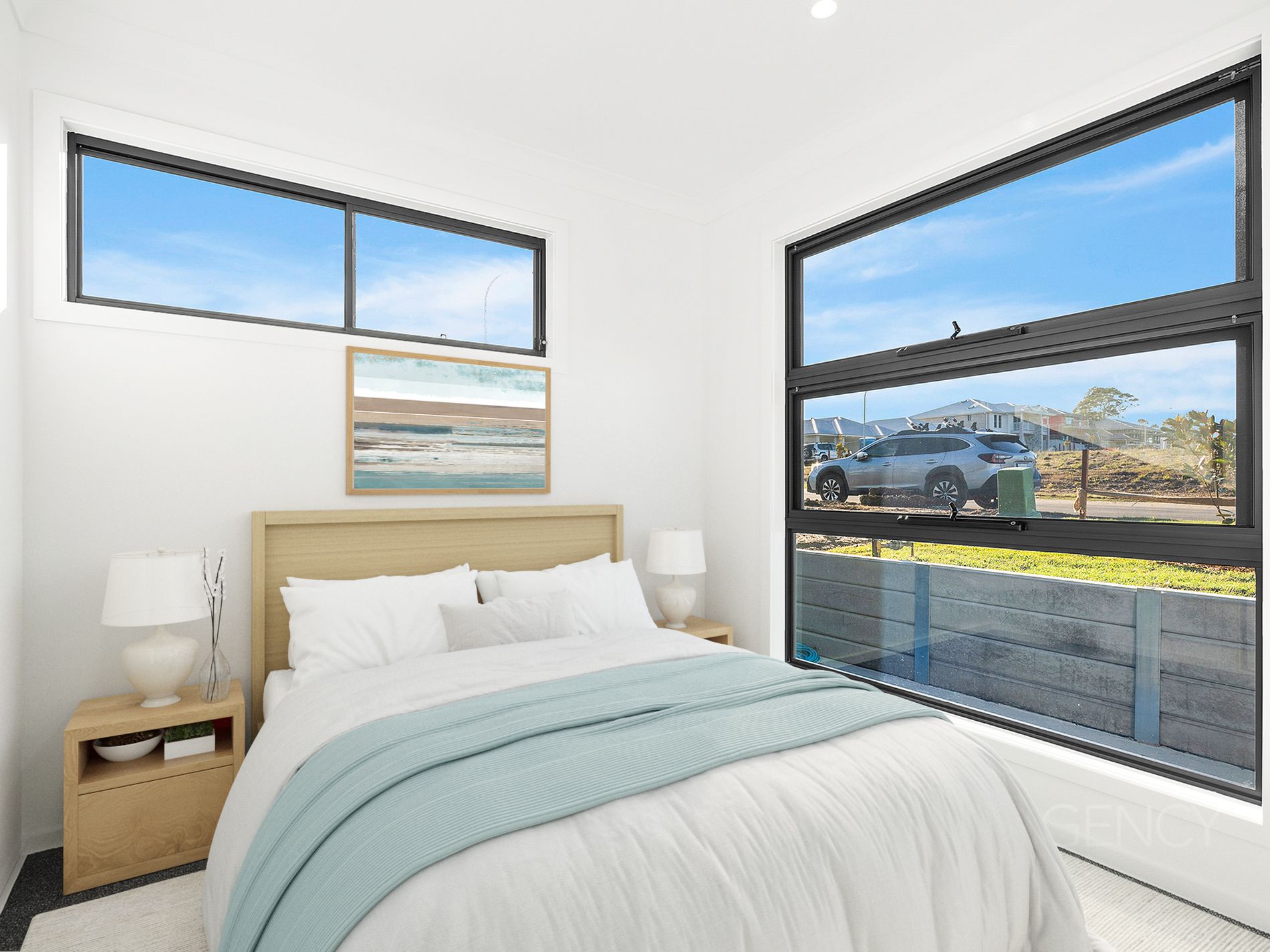 Both homes share a peaceful street position with views toward the water from the front of the block. The left hand residence also enjoys subtle water glimpses from the rear alfresco, while the right hand side captures a leafy, green outlook, offering a private and tranquil setting.