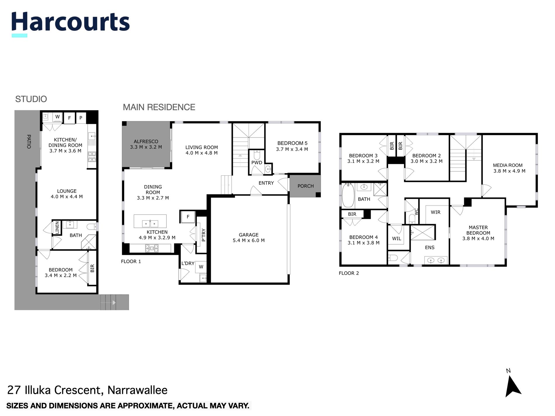 Additional Features: This home offers a range of additional features, including a double garage, ducted air conditioning, built-in wardrobes in all bedrooms, large study/5th bedroom, media room and a laundry room.