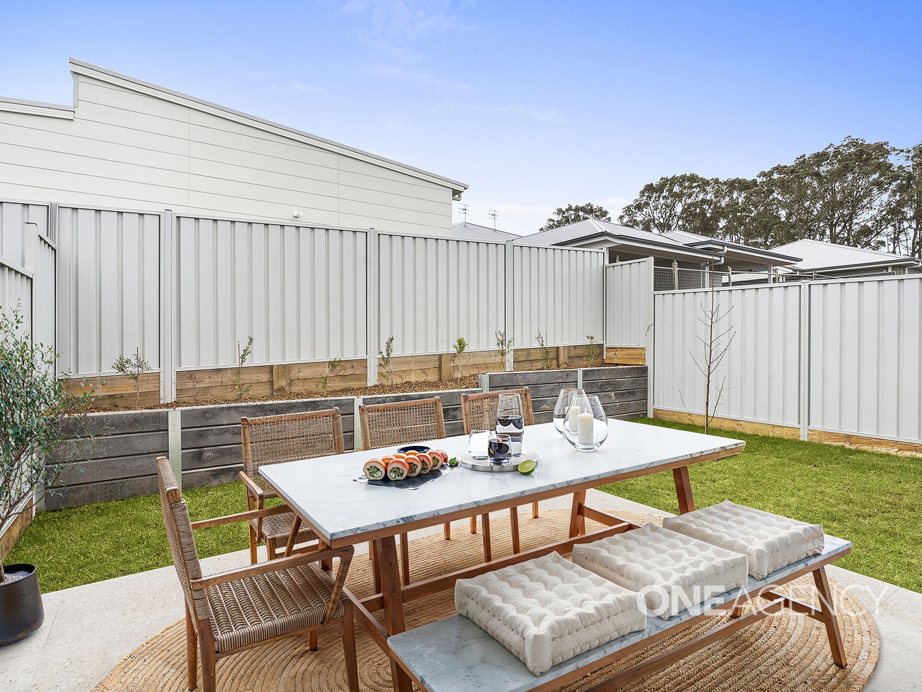 - Alfresco area leading to a sunlit, fenced courtyard