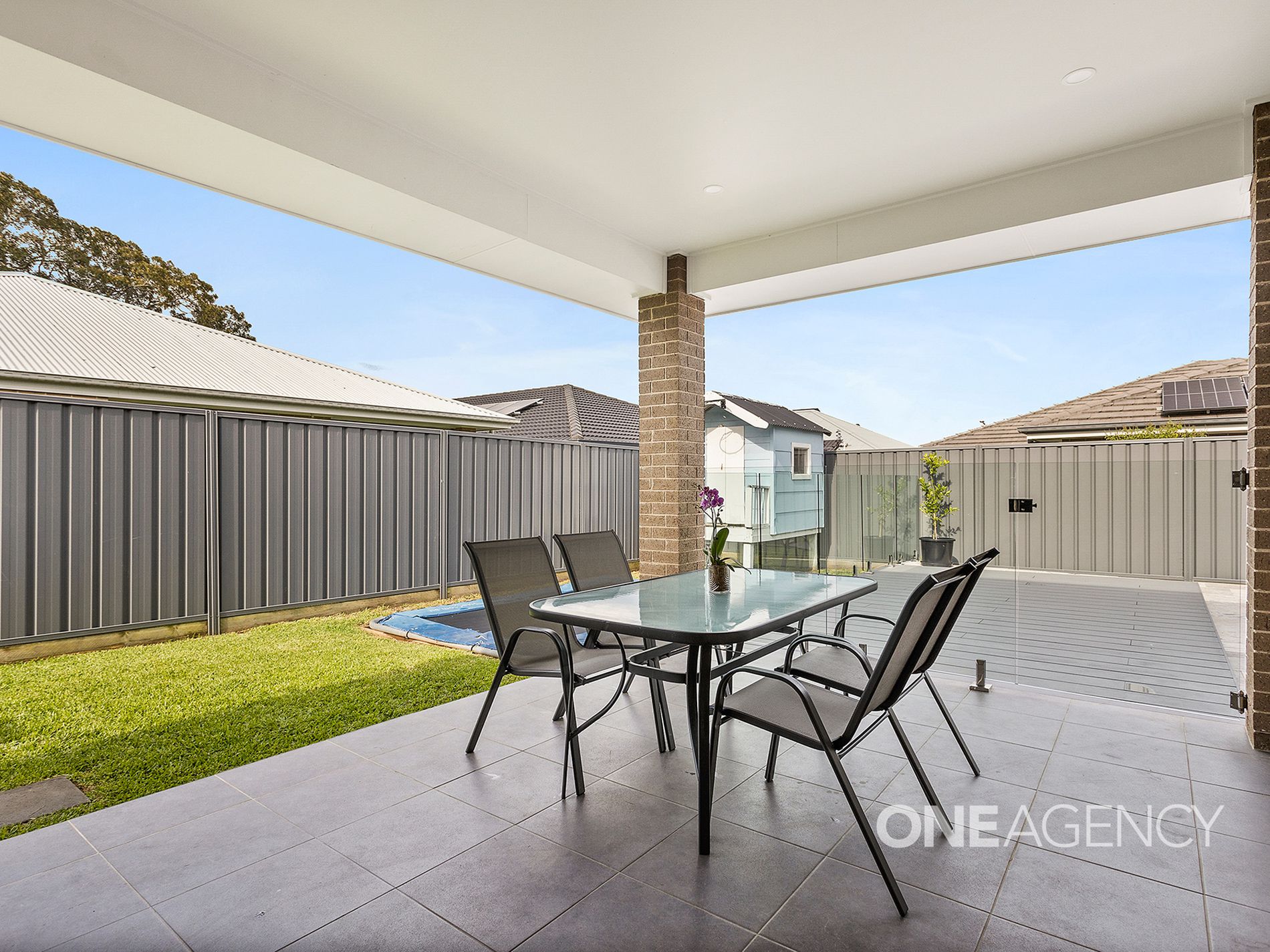 Undercover alfresco overlooking the inground pool and level yard