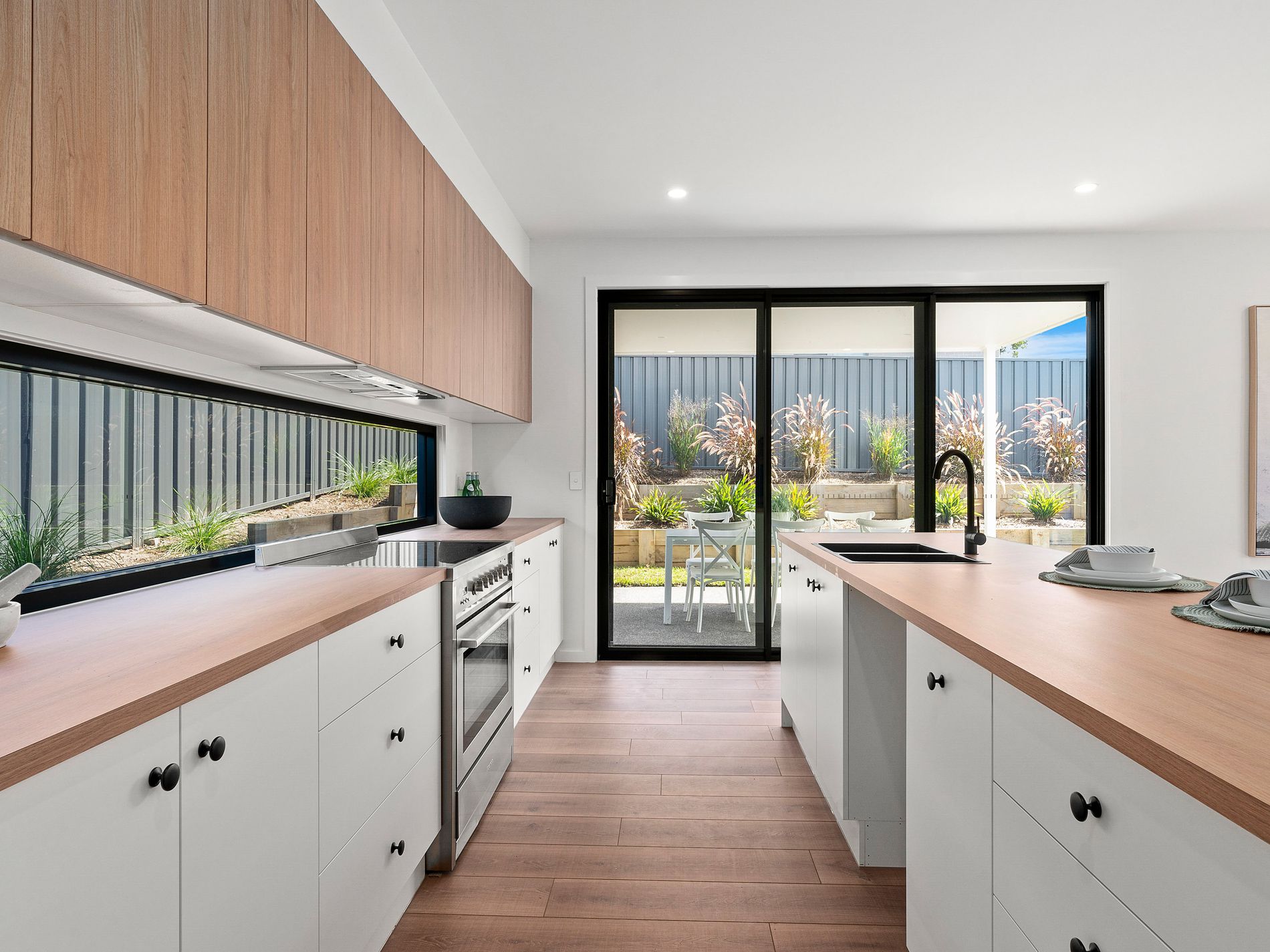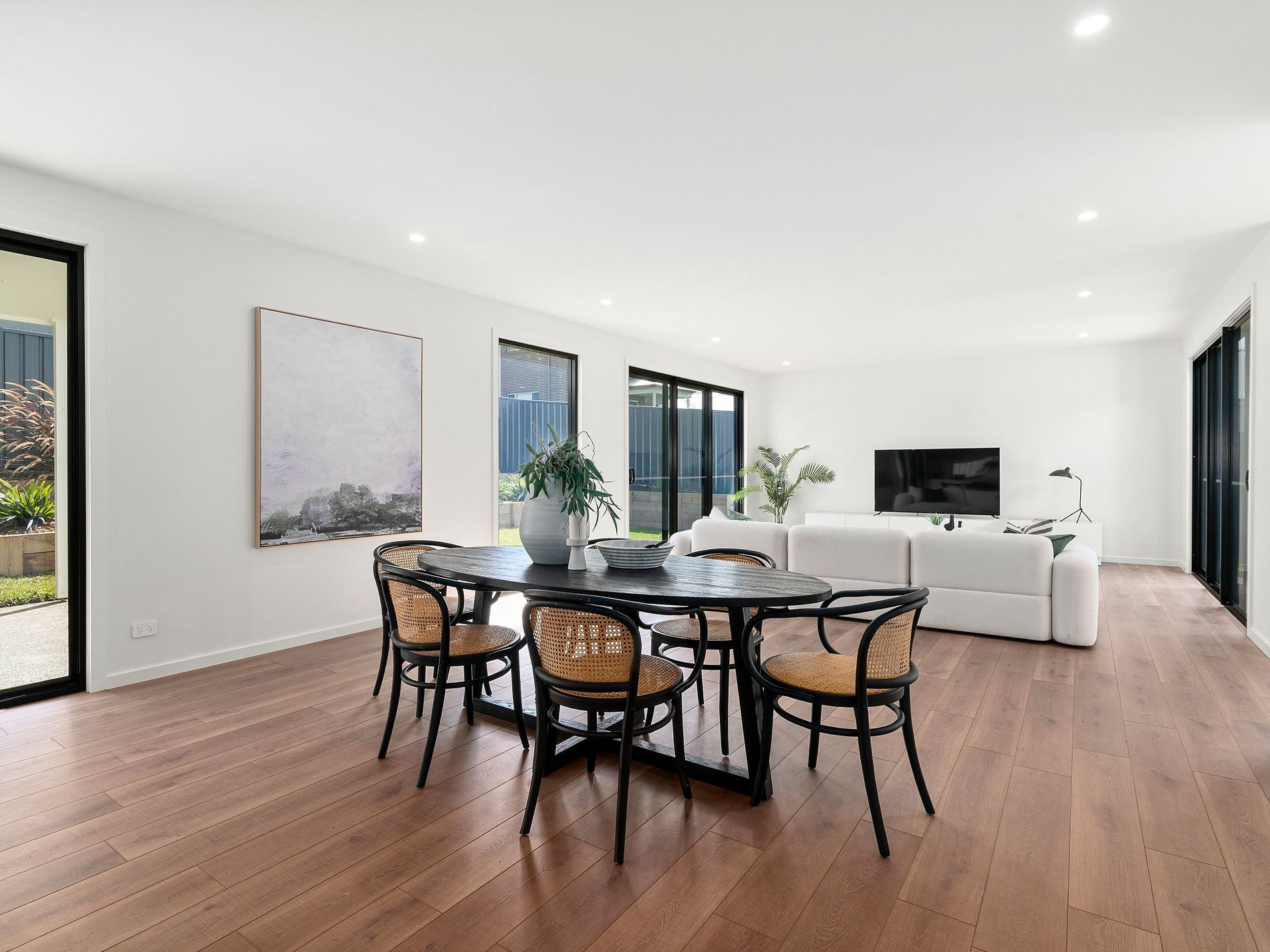 The lower level opens into a generous open plan living and dining zone where the scale of the home really starts to reveal itself. At the centre is an impressive kitchen with a glass splashback, soft close cabinetry, endless drawers and cupboards, and a butler’s pantry that takes storage to another level. Whether you're cooking, entertaining or just keeping an eye on the backyard, this space works exactly how it should.