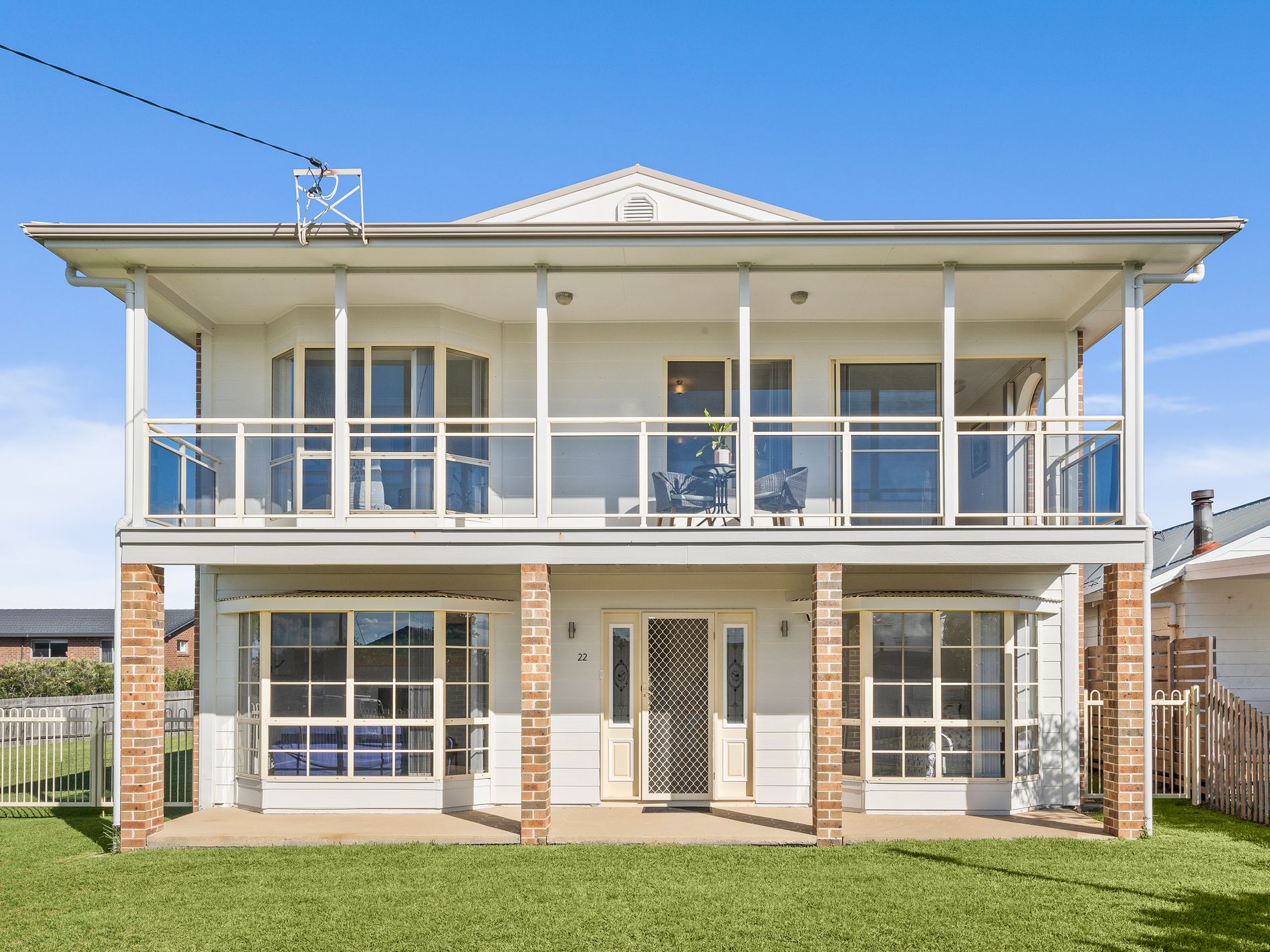 Four-bedroom main residence featuring light-filled living areas and dual front and rear balconies