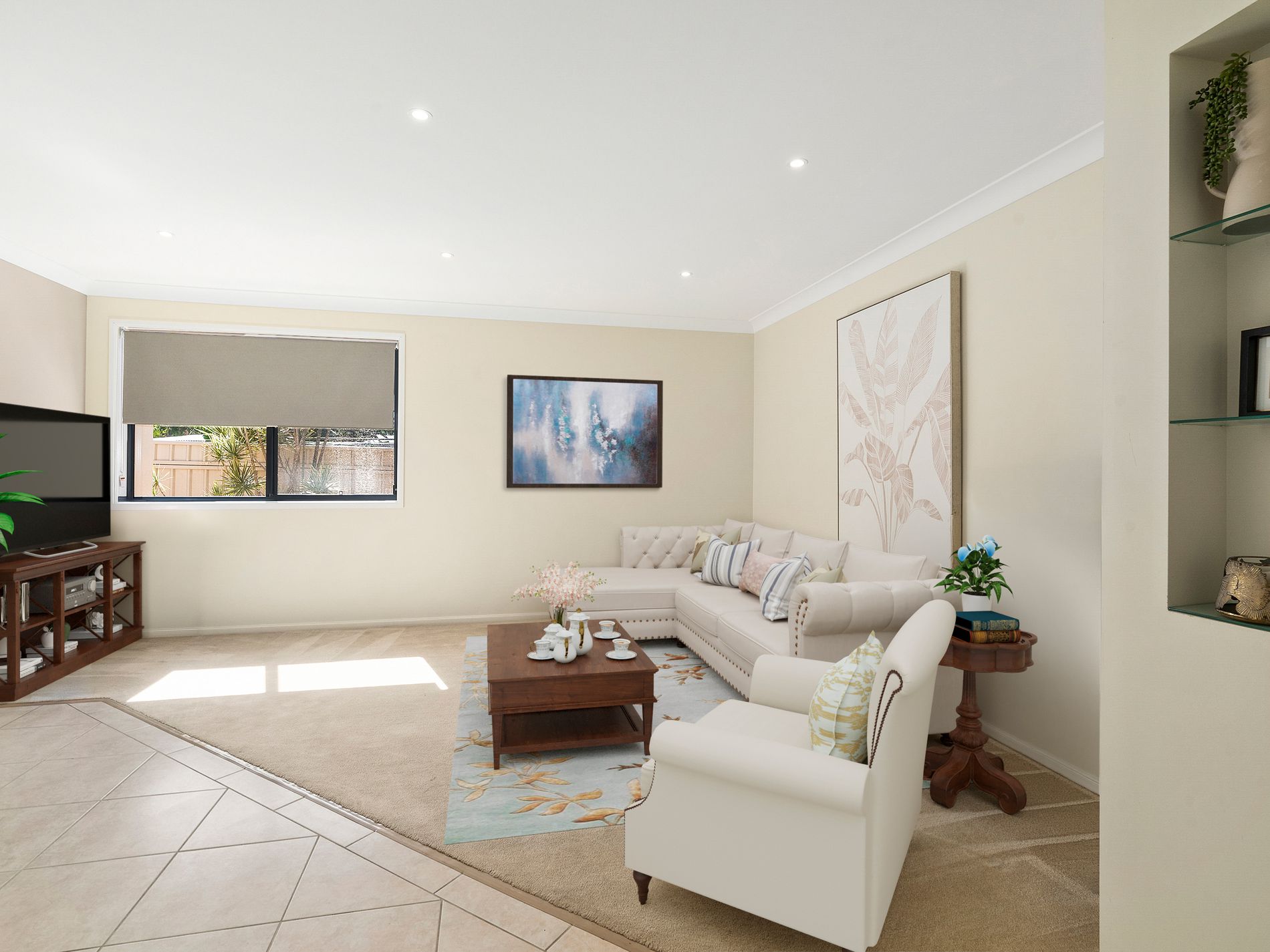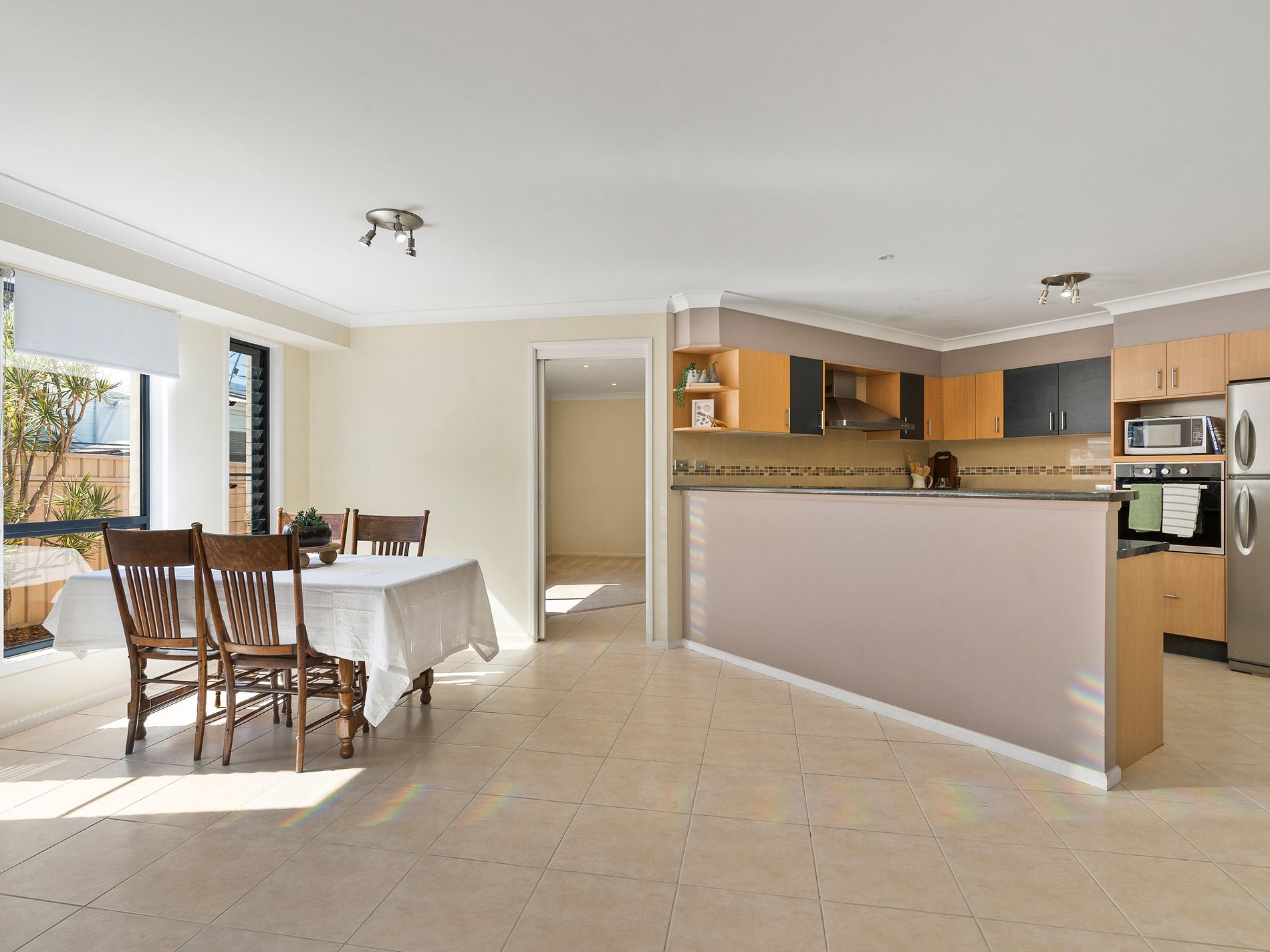 Inside, you’ll find two inviting living areas that make it easy for everyone to spread out and enjoy their own space. The main lounge is light-filled and spacious, ideal for catching up with family while overlooking the garden. A second living area is set up for relaxing and movie nights, with plenty of room for a large lounge and wall-mounted TV.