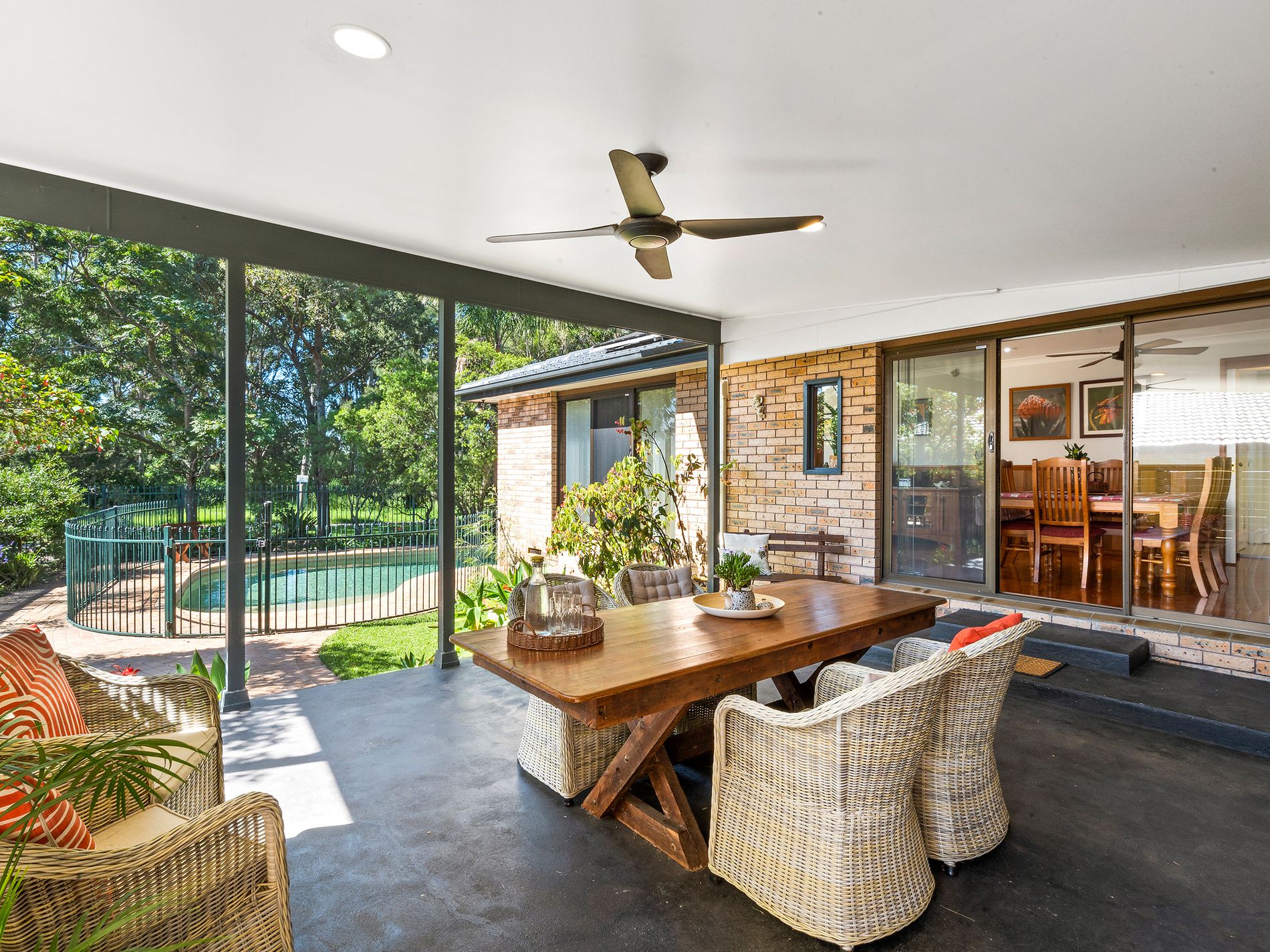 - Four spacious bedrooms with built-in wardrobes and ceiling fans