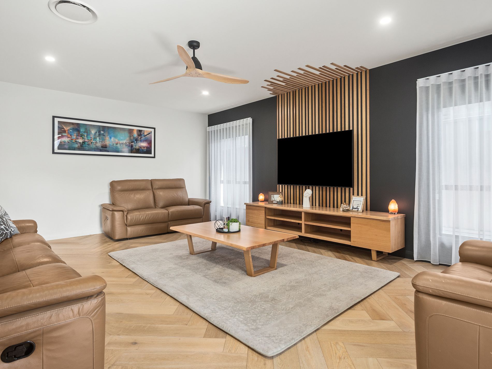 - Ducted heating and cooling, gas heating, ceiling fans throughout, solar and premium modern finishes