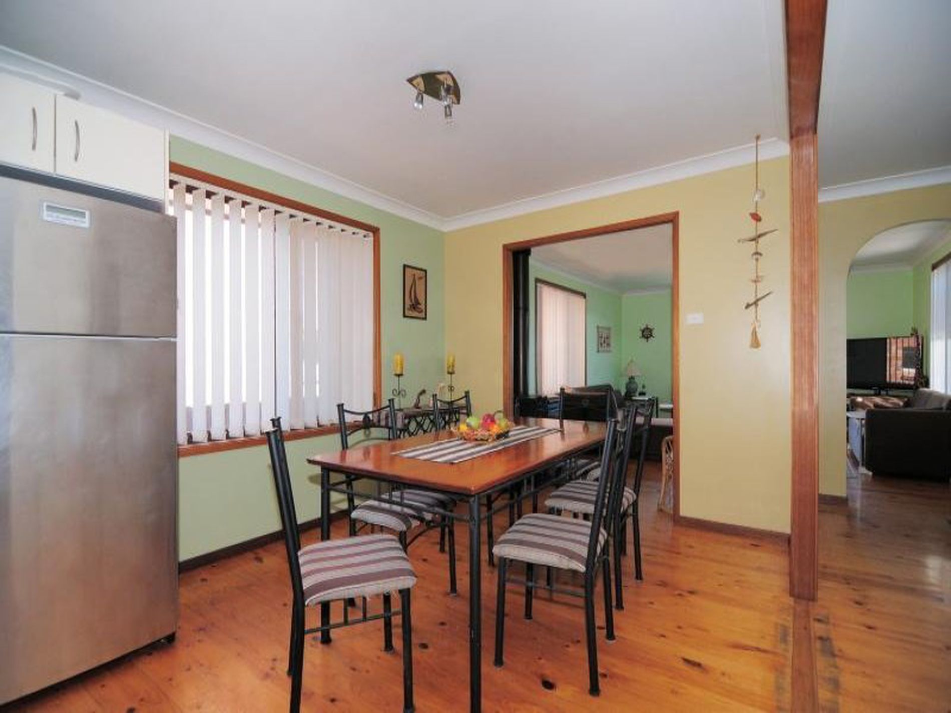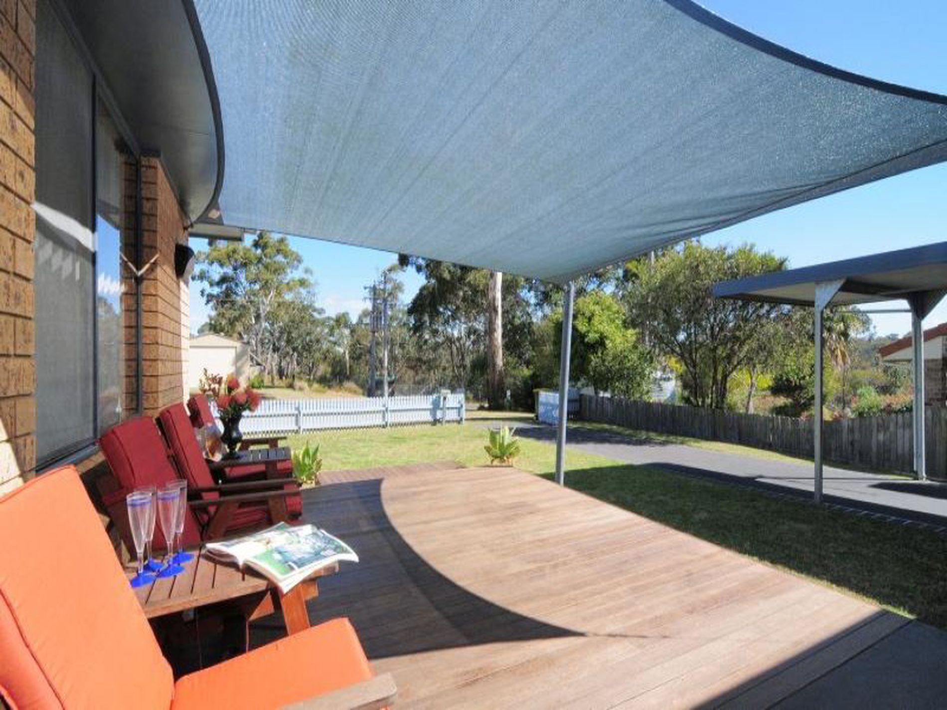 Delightful home located in a quiet area only minutes walk to the beautiful beaches of Jervis Bay. There are 4 bedrooms, a well appointed kitchen, 2 bathrooms and spacious living areas with a combustion fireplace.. The property can comfortably accommodate 8, but it will accommodate 10 as a maximum. There is a large covered outdoor entertaining area, with a separate games room with pool table and bar, and access to the second bathroom. The back yard is level, and there is a childrens play area as well.